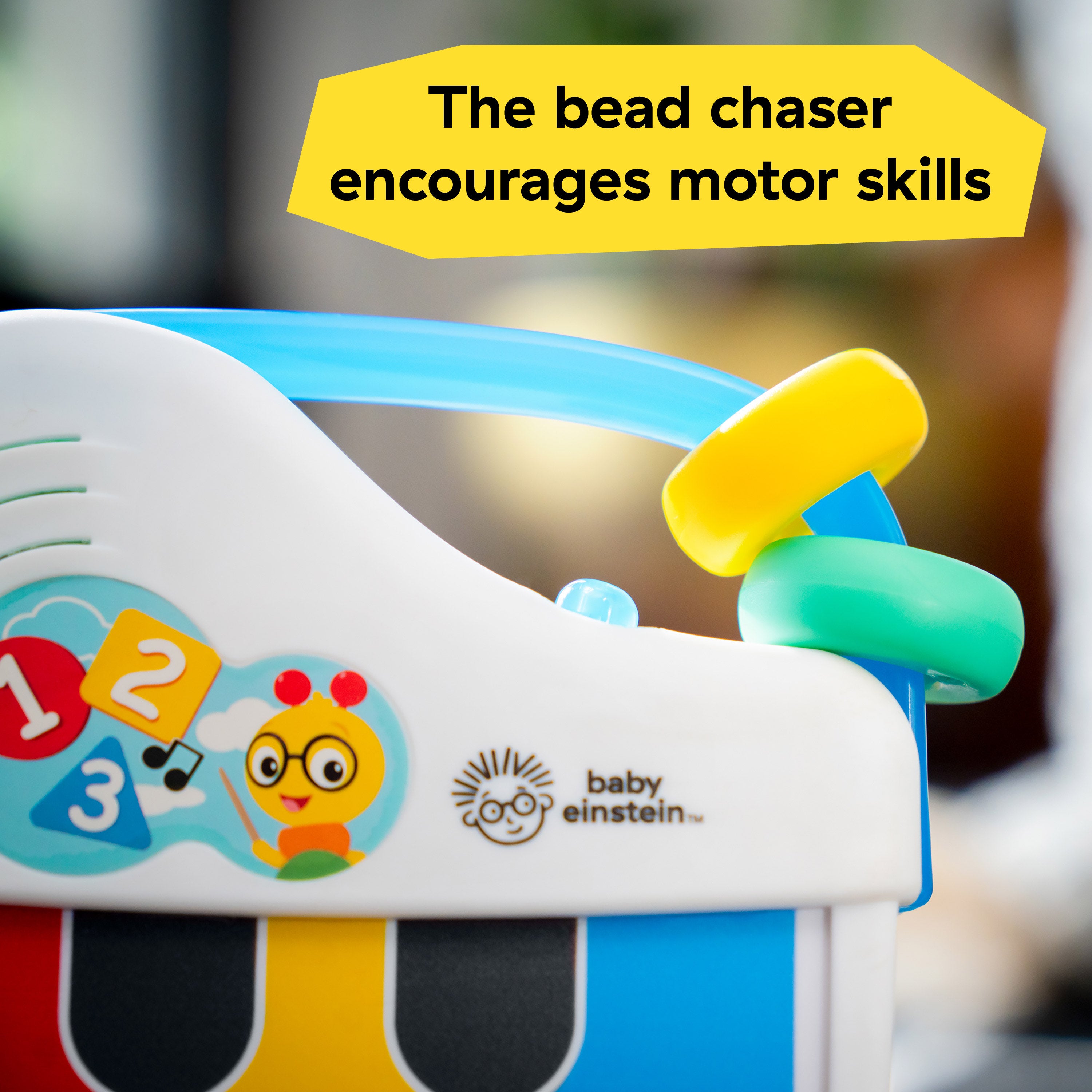 - Piano encourages musical exploration, number and shape discovery for babies ages 3+months. Bead chaser engages and stimulates fine motor skills development.