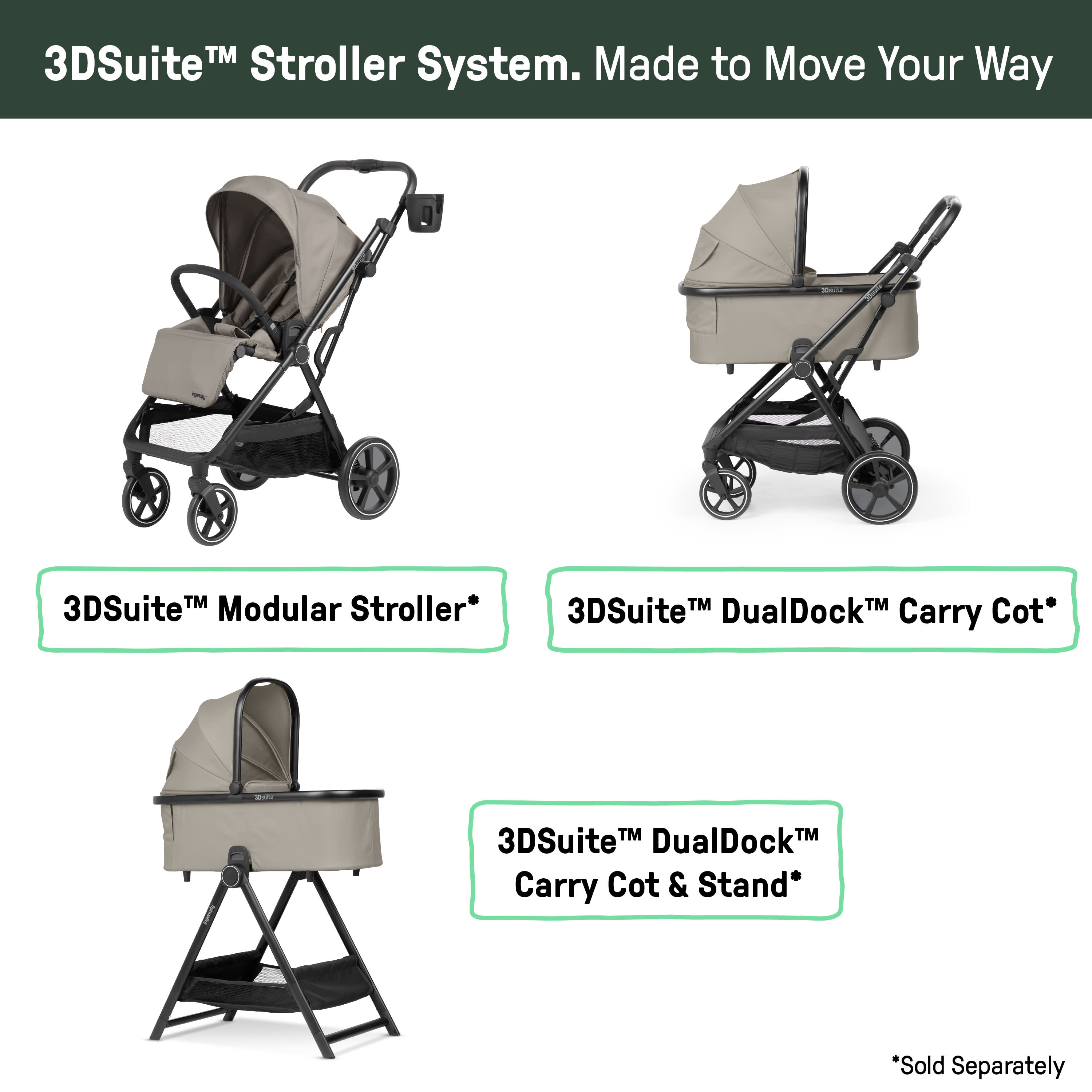 • The Ingenuity 3DSuite DualDock Carry Cot is a lay flat newborn sleep space that promotes healthy rest from day one for naps and nights, when paired with the 3DSuite DualDock Carry Cot Stand (sold separately)
