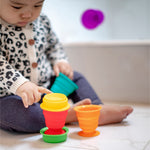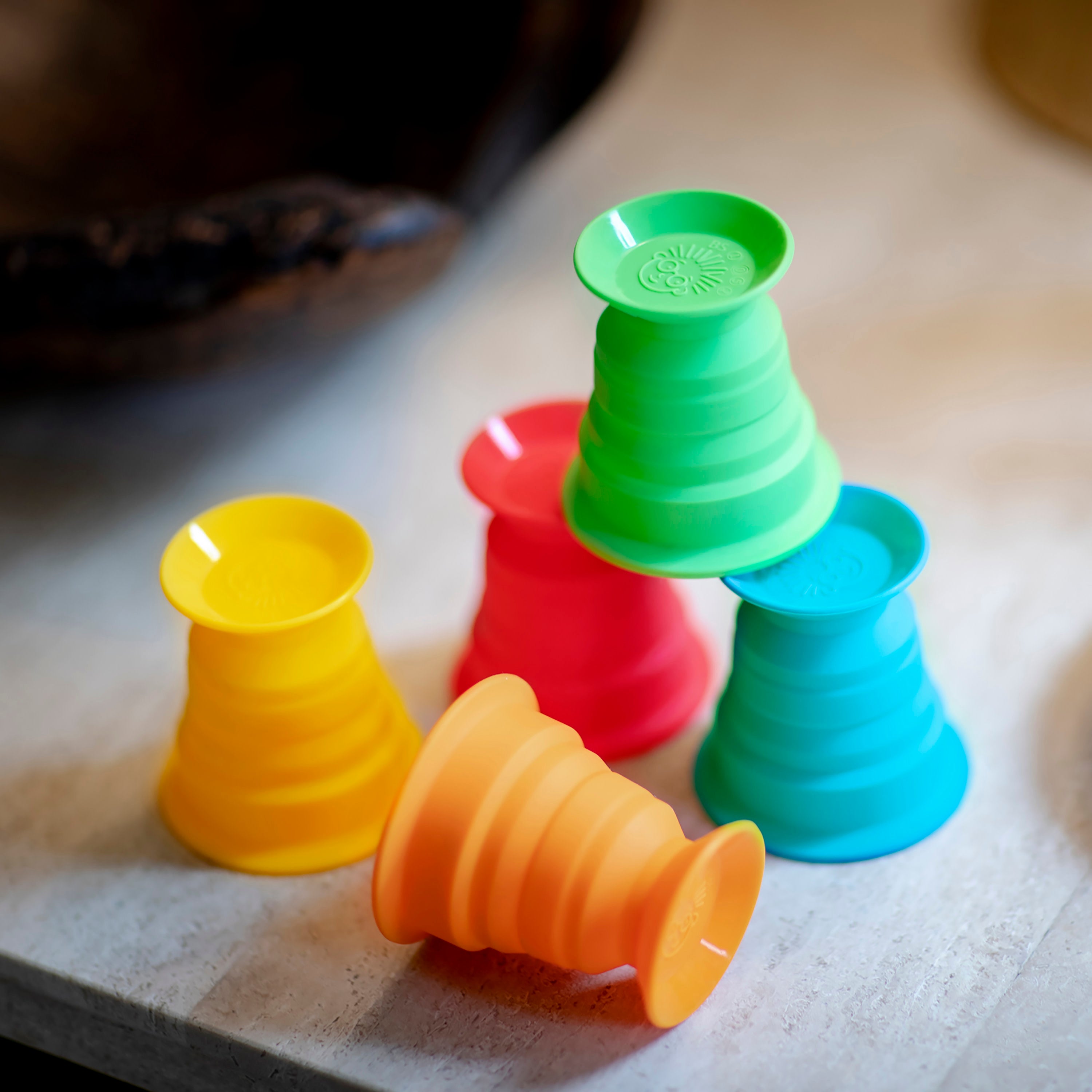 - Endless ways to play – Stick, stack, & squish! These 6 vibrant collapsible cups invite open-ended play and exploration. Featuring suction-cup bases, baby can stick them almost anywhere!