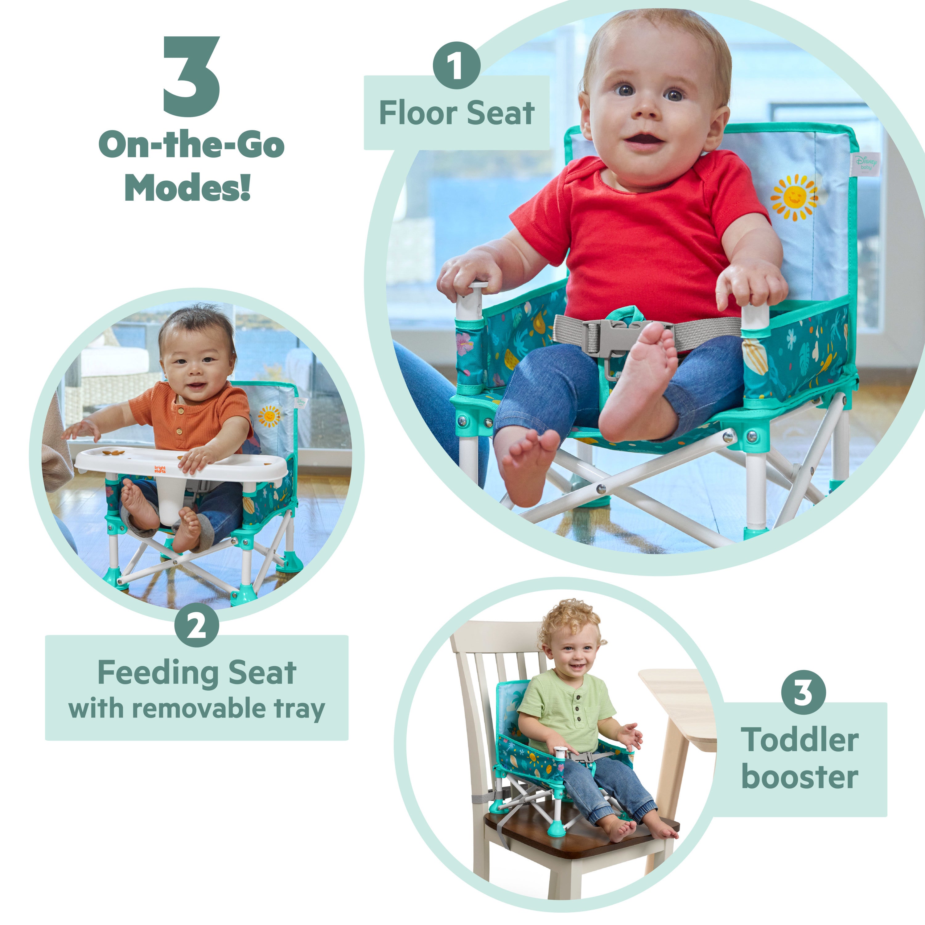 Blast off with the Disney Baby Stitch Pop ‘N Sit, a new out-of-this-world travel booster from Bright Starts! From inside to out, baby to toddler, and mealtime to playtime, this multi-purpose, Stitch-themed seat offers your little one a secure place to sit—no matter what adventure the day has in store. Features 3 modes of use: baby floor seat, feeding seat with removable tray, and toddler booster. For babies, attach the seat to an adult chair using the included straps and tray to create a portable feeding seat. For toddlers, use the seat as a booster that can pull up to the table by removing the tray. In floor mode, you can use the Stitch Pop ‘N Sit whenever you need a baby sit up chair—picnics, sporting events, or right at home! The rear storage pocket holds your daily essentials. Folds compactly when not in use and includes a carrying bag with shoulder strap. Features a dishwasher safe tray and machine washable seat pad. Dimensions: 15 x 13.5 x 14.75” or 5 x 15” when folded. Made for 6 months to 3 years old or up to 37 lbs. #1 Booster*(*Circana, US Unit Sales, Jan-Dec ‘24).