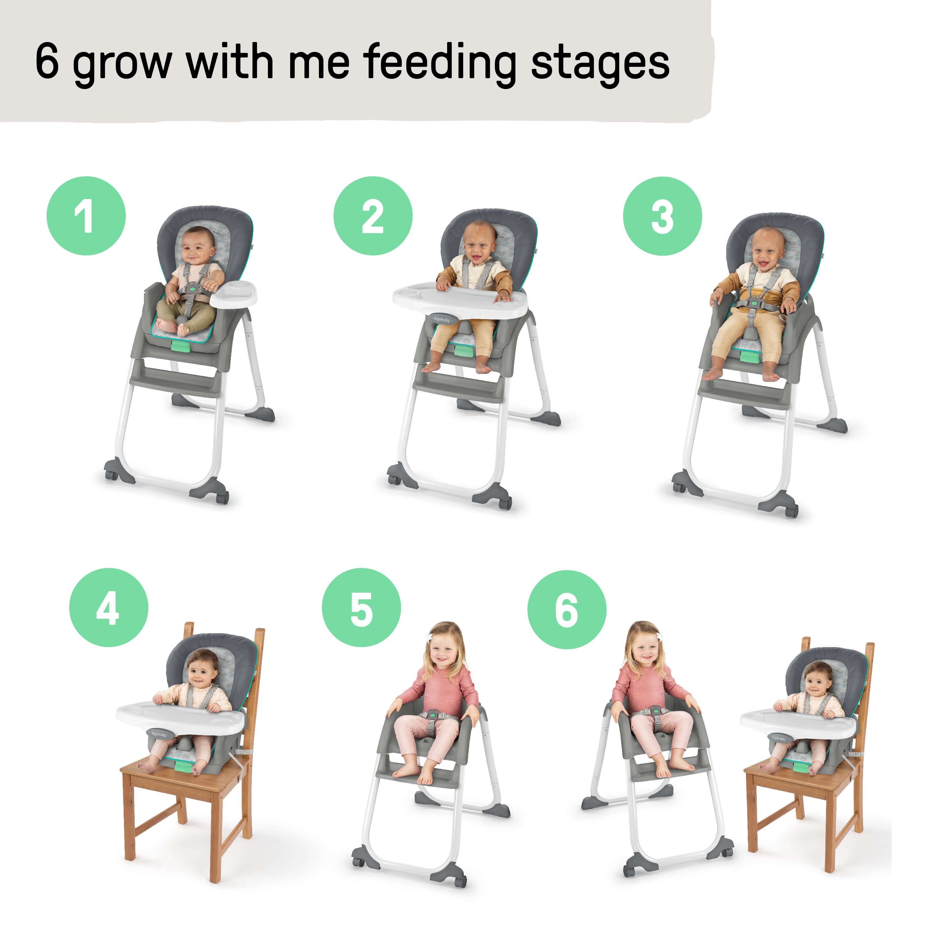 Ingenuity Beanstalk Baby to Big Kid 6-in-1 High Chair, Newborn to 5 Years, Ray
