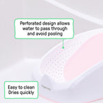 Give your little one support when they need it most with the Easy Rinse Bather. This one-piece infant bath seat cradles baby comfortably, with a non-slip layer that keeps them securely in place during bath time and gives parents a little peace of mind (and an extra set of hands!). The perforated design lets water flow through the bather without pooling, so your baby gets a fresh clean with each and every bath. Use the Easy Rinse Bather in the sink or an adult tub for the ultimate convenience for both parents and baby. ​Easy to clean for busy parents. For babies up to 6 months or 20 lbs, whichever comes first