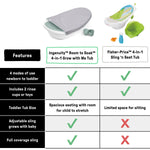Watch baby grow from fully supported baths to bath time fun all in the same comfy tub. The Ingenuity Room to Soak 4-in-1 Tub gives parents 4 simple stages to support baby as they grow into upright seated bathers. A unique wide sling design cradles baby for their first baths and supports them as they slowly begin to explore bathtime from a safe, angled recline. The sling is machine-washable and quick-drying so it's easy to keep ready for use. A support seat provides comfort as baby begins to enjoy bathtime in an upright seat. When they're ready, the support can be removed so toddler has more room for bath time fun. The bath time fun can begin with something as simple as the included pour and rinse cups, to make baby giggle as you get them clean. The drain plug makes it easy to end bath time while it's comfortable design helps make baby happy to return.