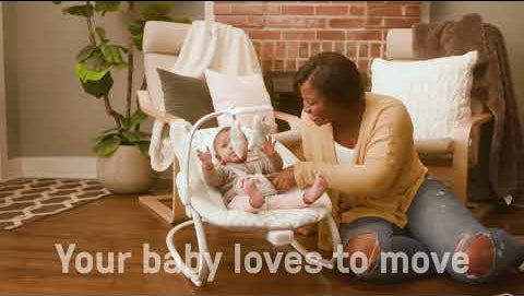 The Ingenuity SimpleComfort Compact Soothing Swing & Rocker offers two new parent "must-haves" in one smart design. The plush baby swing converts into a rocker with a single easy motion. Designed in the USA for ultimate comfort, this swing from the #1 Manufacturer of Baby Entertainment* keeps baby close and secure. Choose between 6 speeds and 3 swinging directions to match baby’s preferences. The mobile’s 2 adorable plush characters entertain baby. The USB cord included powers the swing motion and music, while 1 C battery powers the vibration unit (AC adaptor and batteries not included). Use the included head support for newborns. The swing and rocker are lightweight and compact with wheels and a handle for portability. Easy care machine washable fabrics. You can rest easy knowing the vibration turns off in 30 minutes, and the swing has a 30-, 45-, or 60-minute timer and auto shut-off after 2 hours. Music shuts off after 20 minutes and includes parent volume control. To replace the battery, easily remove the cover at the base of the swing. Third party safety tested and approved. From the #1 Manufacturer of Baby Entertainment* (*Circana, US Dollar Sales, Jan-Dec ‘24)