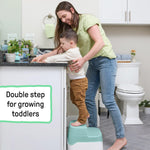 - Finally, when your litle one is ready, close the lid to convert this potty into a double stepstool to help your child reach any standard adult-sized toilet and bathroom sink.