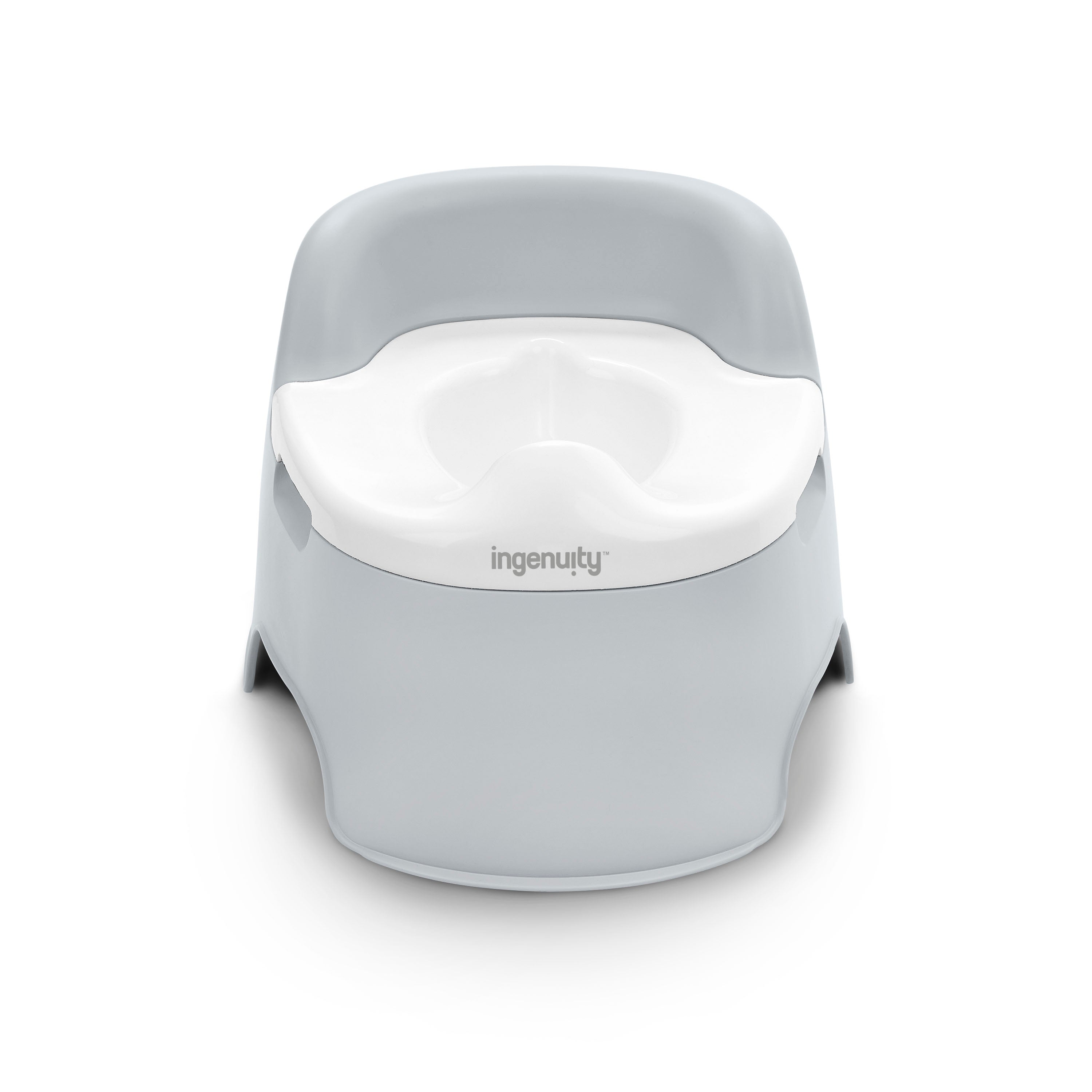 Help your little one tackle potty training with a potty that supports you both! The Ingenuity Full Comfort Potty has a high back, seat handles, and a wide base to help keep baby secure and comfy as they learn to go on their own. For busy moms and dads, the potty has a removable bowl for simple emptying and cleaning when baby is done. A splash guard helps keep baby's mess in the bowl instead of on the ground. A simple, modern design allows the potty to blend into any modern bathroom. Help your little one get going with a potty that supports you both! From the #1 Manufacturer of Potties* (*Circana, US Dollar Sales, Jan-Dec ‘24)