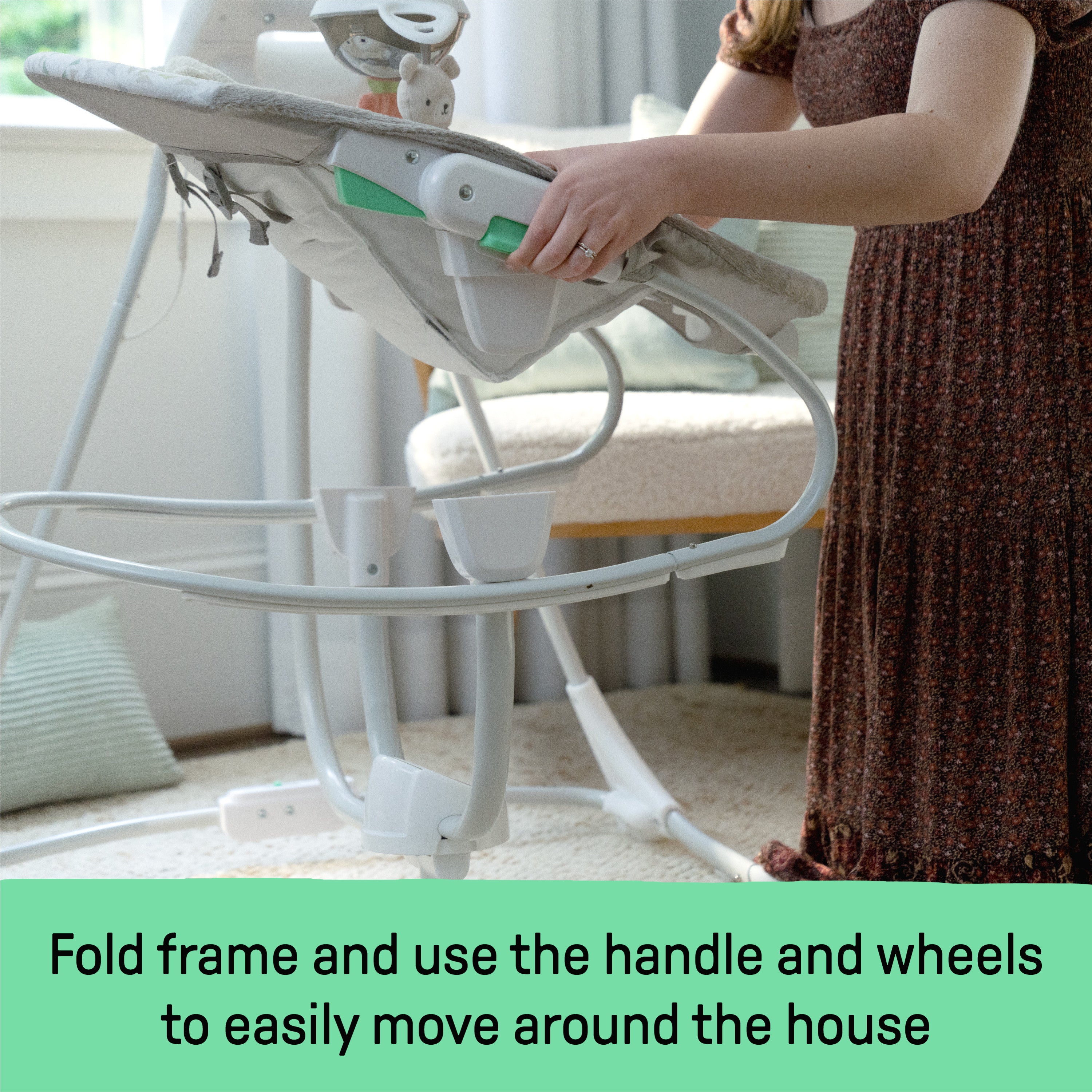 - Easy to move around the house with the incorporated handle and wheels; remote control added for ease of use for parent; For ages 0-9 months or up to 20 pounds, whichever comes first