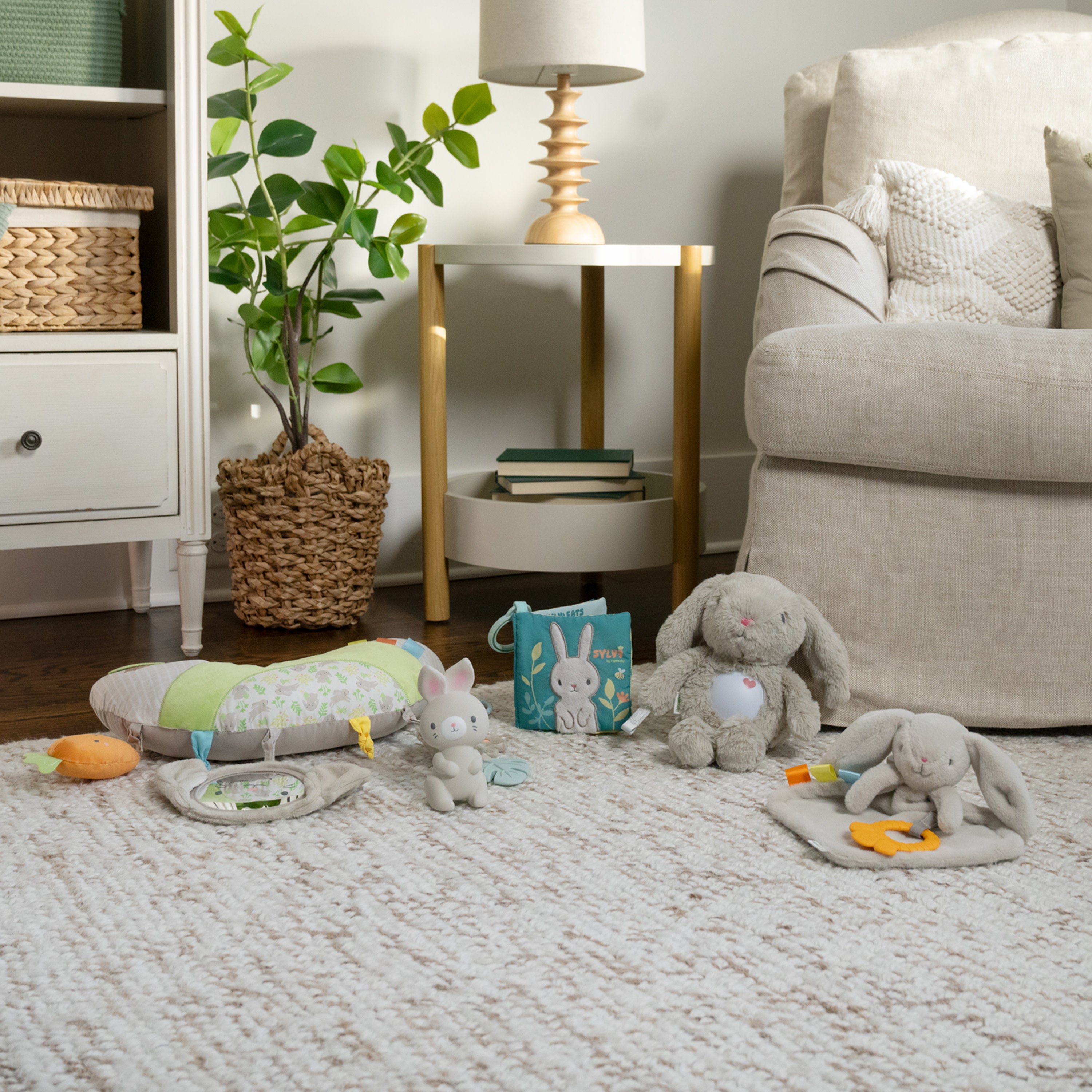 Help soothe baby’s sore gums with the Sylvi Natural Rubber Teether Toy. Made of all-natural rubber, this rabbit-shaped teething toy helps ease sore gums and stimulates all of baby's five senses with sounds, textures, and more. Large and easy for infants ages 0 months and up to grasp, and baby will delight in exploring Sylvi's textures and sounds with every grasp, squeeze, and chew. Responsive, natural rubber provides gentle relief for sore gums, and Sylvi squeaks when squeezed to capture baby’s interest, inspire tactile development, and provide a dose of fun.