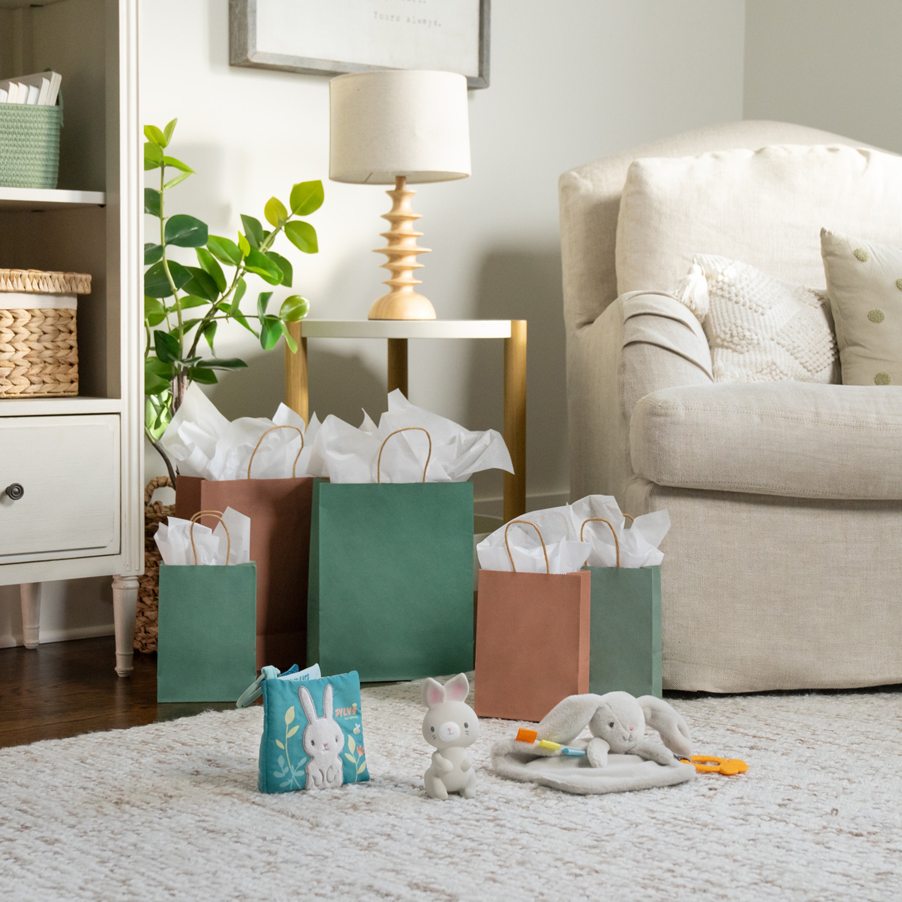 Help soothe baby’s sore gums with the Sylvi Natural Rubber Teether Toy. Made of all-natural rubber, this rabbit-shaped teething toy helps ease sore gums and stimulates all of baby's five senses with sounds, textures, and more. Large and easy for infants ages 0 months and up to grasp, and baby will delight in exploring Sylvi's textures and sounds with every grasp, squeeze, and chew. Responsive, natural rubber provides gentle relief for sore gums, and Sylvi squeaks when squeezed to capture baby’s interest, inspire tactile development, and provide a dose of fun.