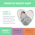 - This swaddle is part of Stage 1 in the SwaddleMe Stages of Healthy Sleep, made for newborns who aren't rolling over yet and like to be swaddled with their arms in