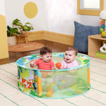 - Keep a close eye on playtime and ensure baby’s comfort with mesh panels; great for gifting occasions; opens up to a spacious 31.5” diameter for play; folds down to 17.5" x 16.5" x 4" in carry bag or 11.25" x 11.25" x 2.25" ball pit only