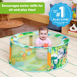Get ready to have a ball with the Bright Starts Rowdy Rainforest Stow & Go Ball Pit! This foldable baby ball pit comes with 20 balls and a carry bag for sit and play fun wherever the day takes you. Thoughtfully-designed, it immerses your little explorer in a playful rainforest scene featuring Bright Starts animal characters. The ball pit ridge includes 3 ball-drop openings, so baby can practice their fine motor skills. Simply twist and fold down when playtime is over! The exciting baby play gym encourages motor skill development as baby enjoys grasping, tossing, rolling, and catching the colorful balls. Peek-a-boo! The panels are made with a mesh material, so you can keep a close eye on the action. Ideal for small spaces and travel with convenient, compact storage. Makes a great gift for baby showers, birthdays, and holidays like Christmas and Hanukkah. Designed for ages 6 months and up. Opens up to a spacious 31.5” diameter for play.