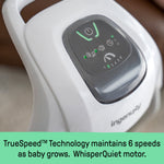 - TrueSpeed technology maintains 6 speeds as baby grows; WhisperQuiet motor for peaceful swinging experiences; Parents can control the swing with timer settings and auto-shut off features