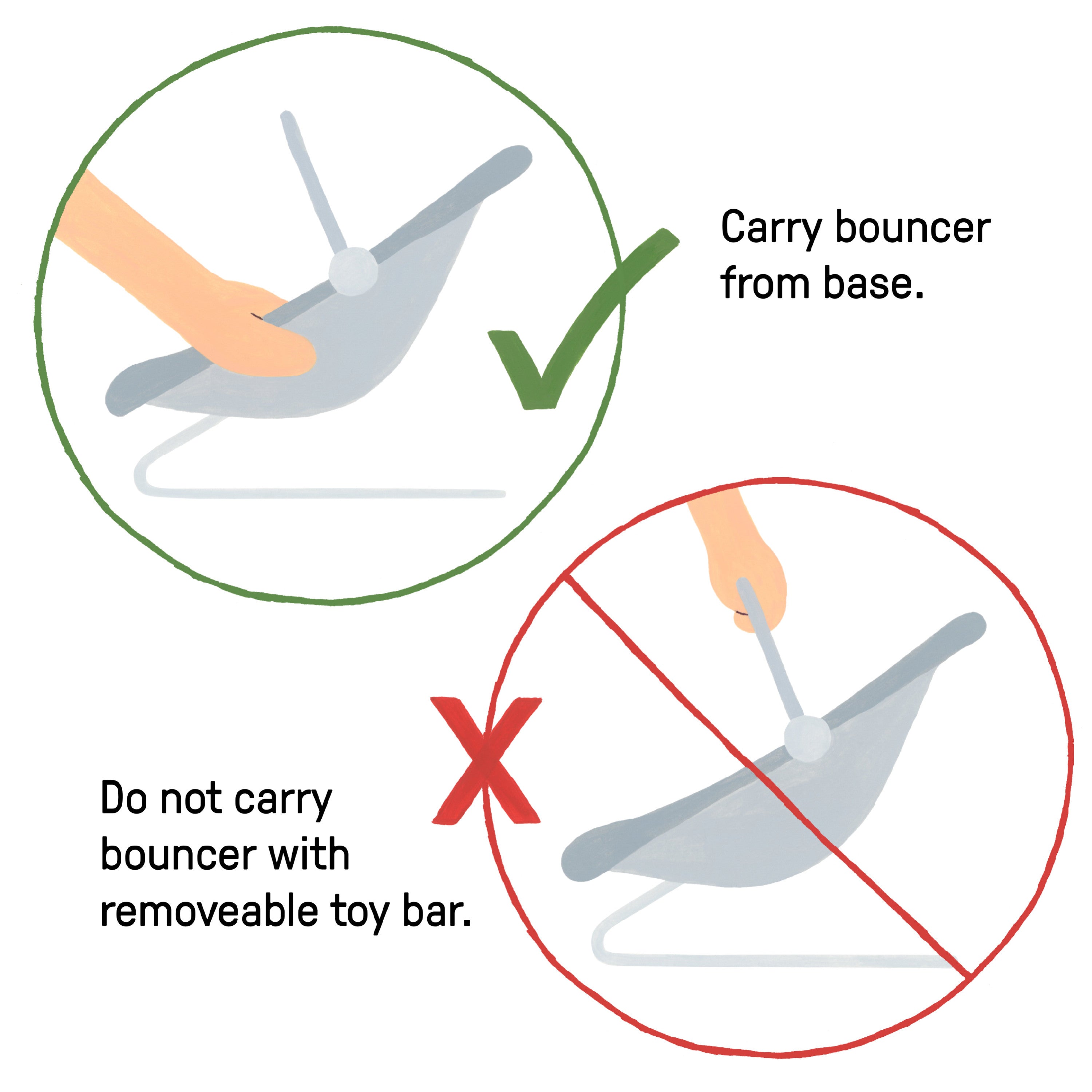 - Includes removable light-up overhead toy bar for engaging & 2 hanging plush toys for practicing reaching & grasping; Baby bouncer makes great gift for holidays & baby showers