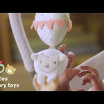 - Includes removable toy bar with two toys—plush hot air balloon toy and wood ring with sensory tags