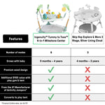 - Ingenuity's Tummy-to-Toes 6-in-1 Milestones Center gives you all the tools you need to build 6 different milestone-based activities from baby to big kid