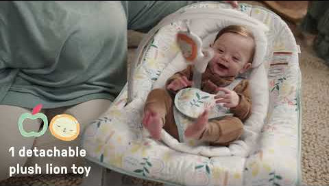 - Soothing vibrations help to keep baby calm; includes 1 detachable plush lion playtime toy for entertaining and to practice reaching and grasping; vibrations powered by 1 C battery (not included)