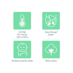- This soft and cozy swaddle is made of durable natural fiber (100% cotton) and is machine-washable. The snug fit helps prevent the startle reflex