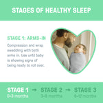 - This swaddle is part of Stage 1 in the SwaddleMe Stages of Sleep, made for newborns who aren't rolling over yet and like to be swaddled with their arms in