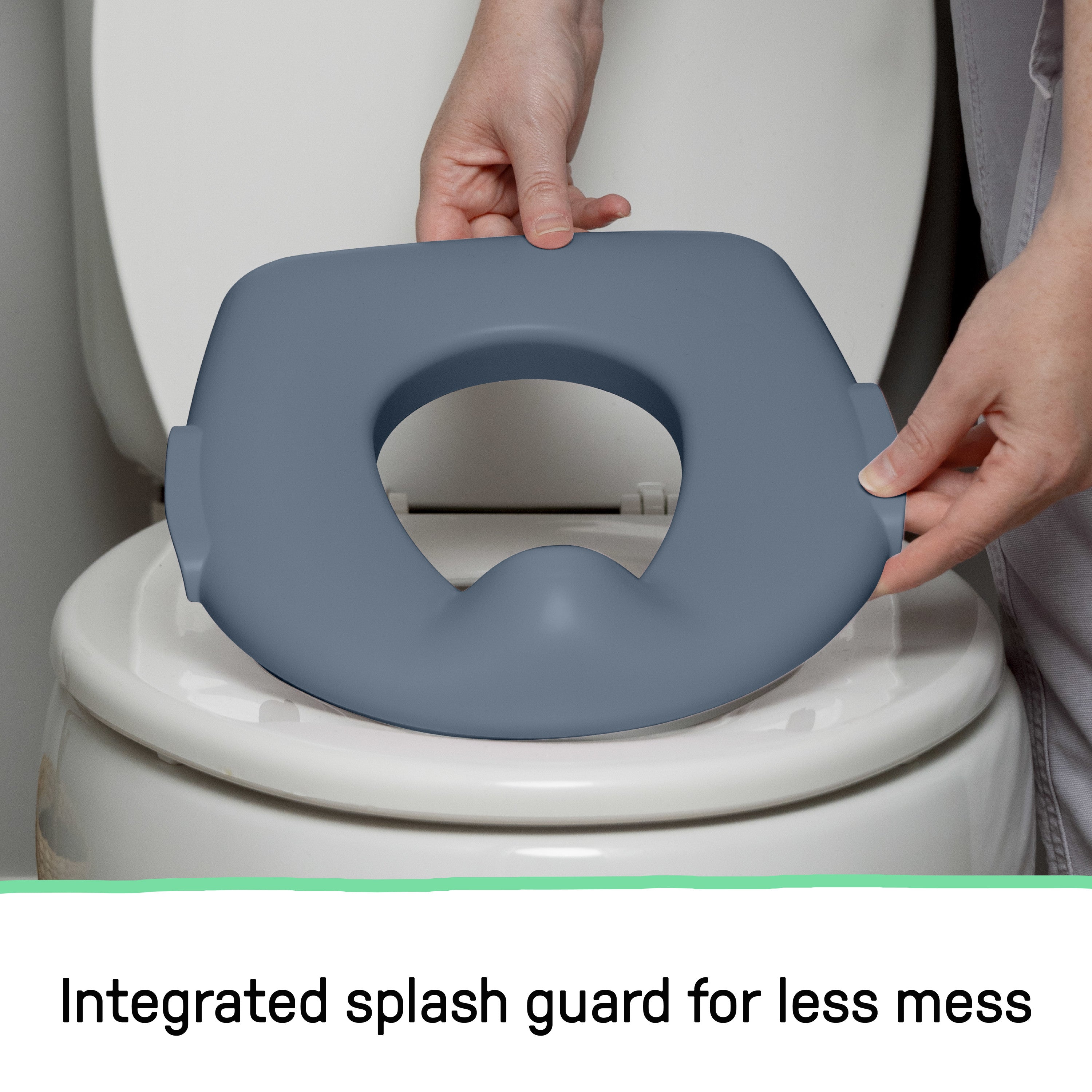 - Detachable potty ring fits on a full-size toilet to help child transition to adult toilet; The removable bowl is easy to clean and features a built-in splash guard to keep messy moments contained