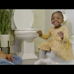 - Kids will feel a sense of accomplishment by pushing this toddler potty’s realistic-sounding handle to “flush” when finished, ensuring a confident transition to the real thing