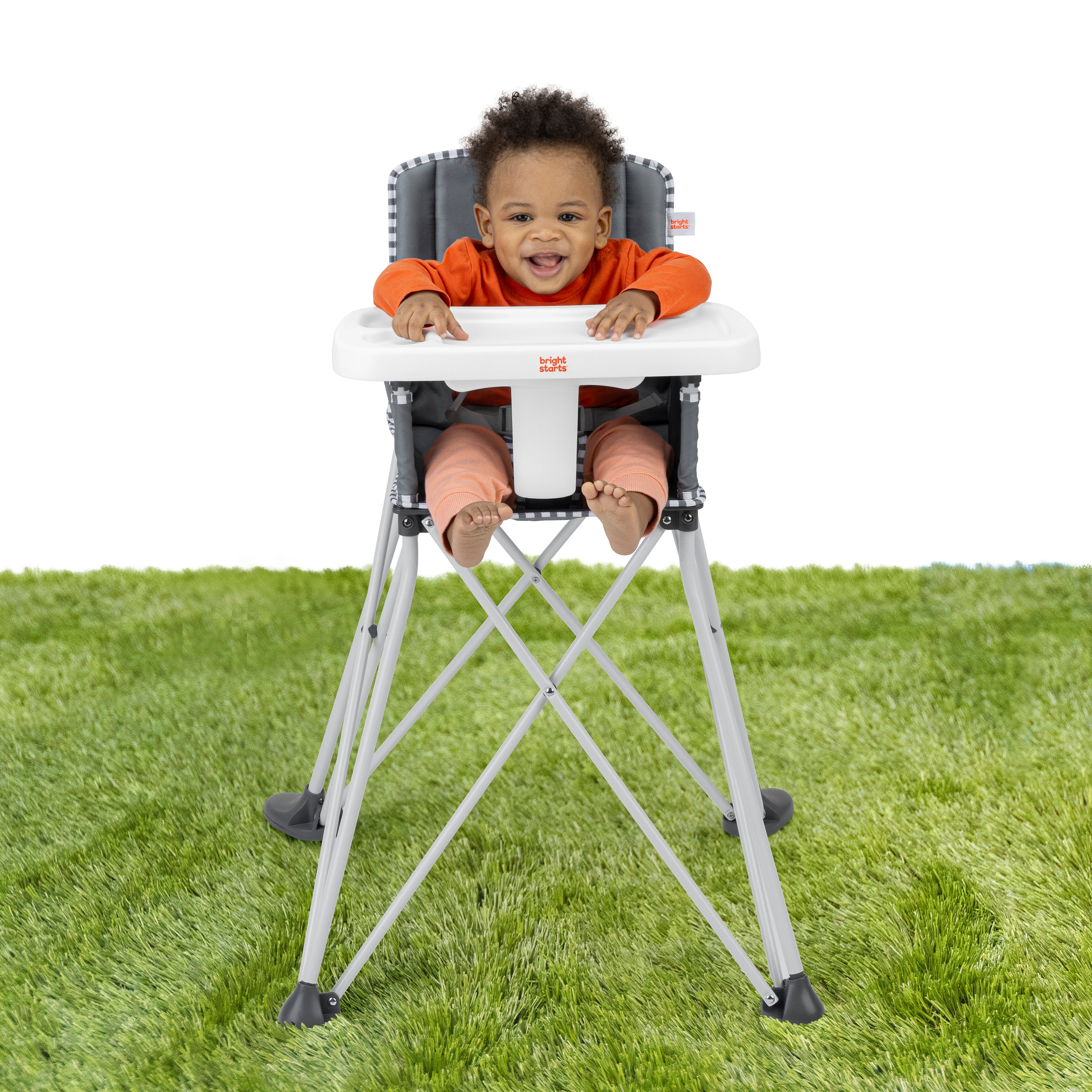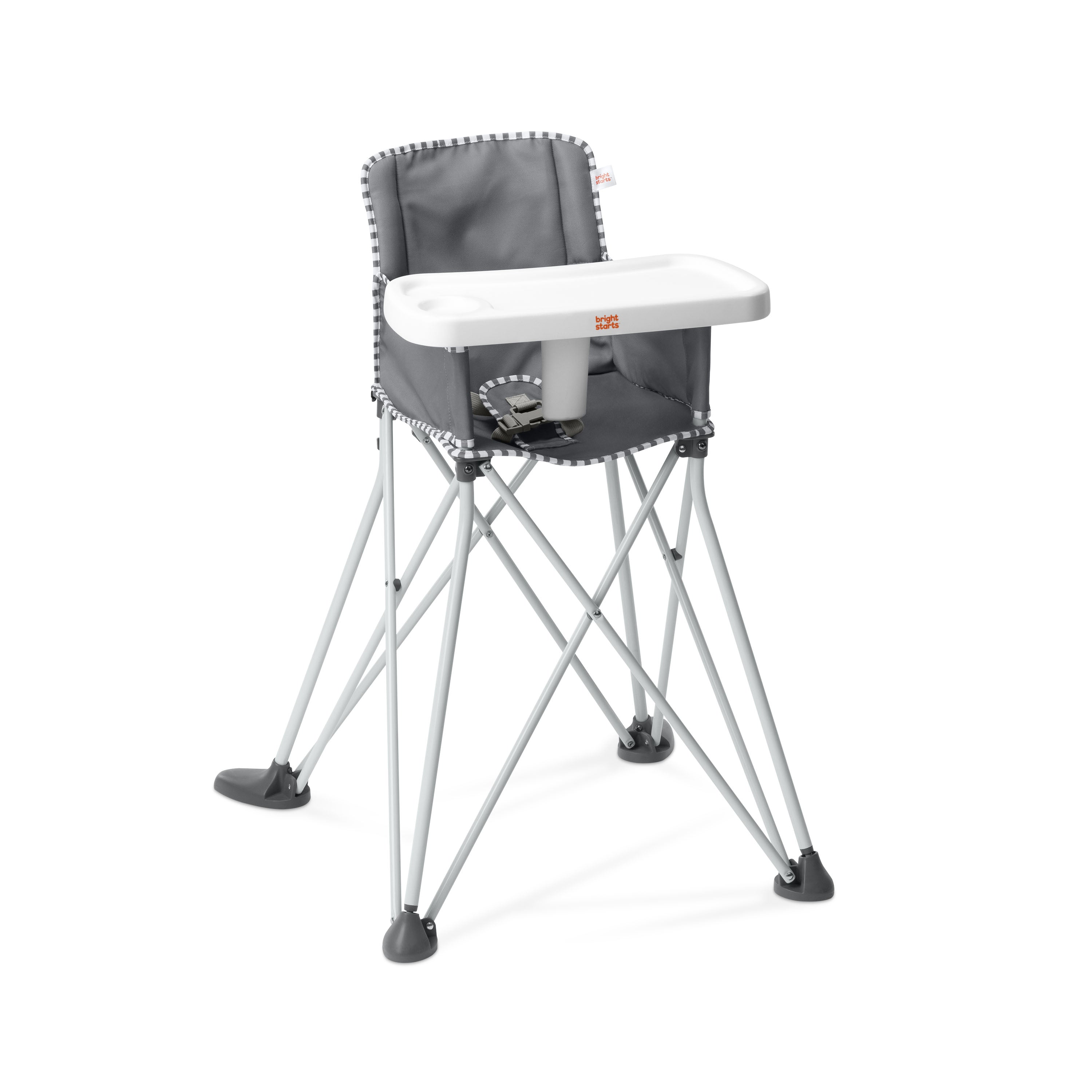 - Bright Starts Pop ‘N Dine portable high chair makes on-the-go mealtime a breeze, from restaurants to the backyard to family travels; made for indoor/outdoor use