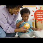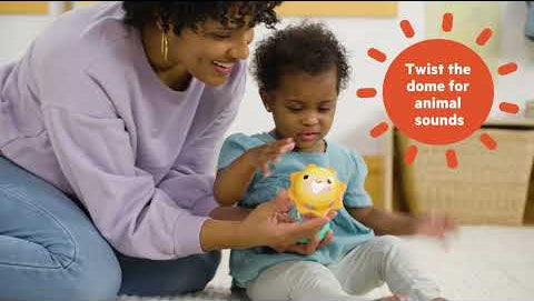 - Rotate the sunshine dome to hear animal sounds that match the 6 animals featured (cat, bear, frog, monkey, bird, and lion); shake to hear beads rattle and watch them fall like raindrops