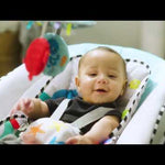 Discover the only swing with a piano toy that engages baby from birth to age 2! The Baby Einstein Ocean Explorers Kick to It 4-in-1 Musical Swing & Rocker features a detachable electronic piano toy and offers 4 ways to keep baby entertained and learning. This lightweight, compact swing lets baby explore music and sounds as they kick and tap the piano! Seat rotates 180-degrees with 3 swing directions and 2 recline positions keep baby comfy and in view. True Speed technology automatically adjusts swing speed to match baby’s weight. Two soft toys and a mirror engage baby’s eyes, and the detachable kick piano helps baby create their own song! Your infant will delight in the piano’s dancing lights, 56 melodies and ocean sounds, and can engage in cause and effect learning as they kick and tap the keys. Take the piano on-the-go to help entertain toddlers with music or learn colors and numbers in 4 languages. For simple soothing, effortlessly transform the swing into an infant rocker. The infant seat pad doubles as a tummy time mat to help baby build key motor skills! Swing features vibrations and a timer function with automatic shut off. Piano requires 3 AA batteries (not included). Swing powered by USB port (adaptor not included); Machine washable seat pad. Dimensions: 36.22 in (H) × 34.25 in (W) × 31.10 in (L). Third party safety tested and approved.