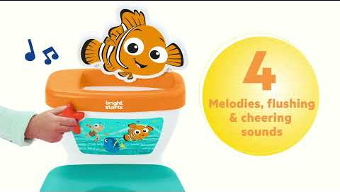 Make potty training a fun adventure with the Disney Baby Finding Nemo My Size Potty by Bright Starts – featuring everyone’s favorite clownfish, Nemo! Designed to engage toddlers and keep them excited about potty time, this 2-in-1 system grows with your little one through their potty training journey. Start with the floor potty chair that's just like a real toilet, then transition to the adult toilet with the removable seat. The realistic flushing sounds, cheering, and melodies will make every success feel like a big win. The 12 included Finding Nemo-themed stickers let toddlers personalize their adorable training potty, adding even more fun to the process. With easy assembly and a removable pot for quick clean-ups, this toddler potty is as practical as it is playful! The potty training seat fits most round, elongated, and D-shape toilets. A built-in splash guard and handles ensure your little one feels safe and secure while learning the ropes. Plus, a convenient storage compartment keeps potty training essentials close at hand. Recommended for ages 18 months+ or up to 50 pounds.