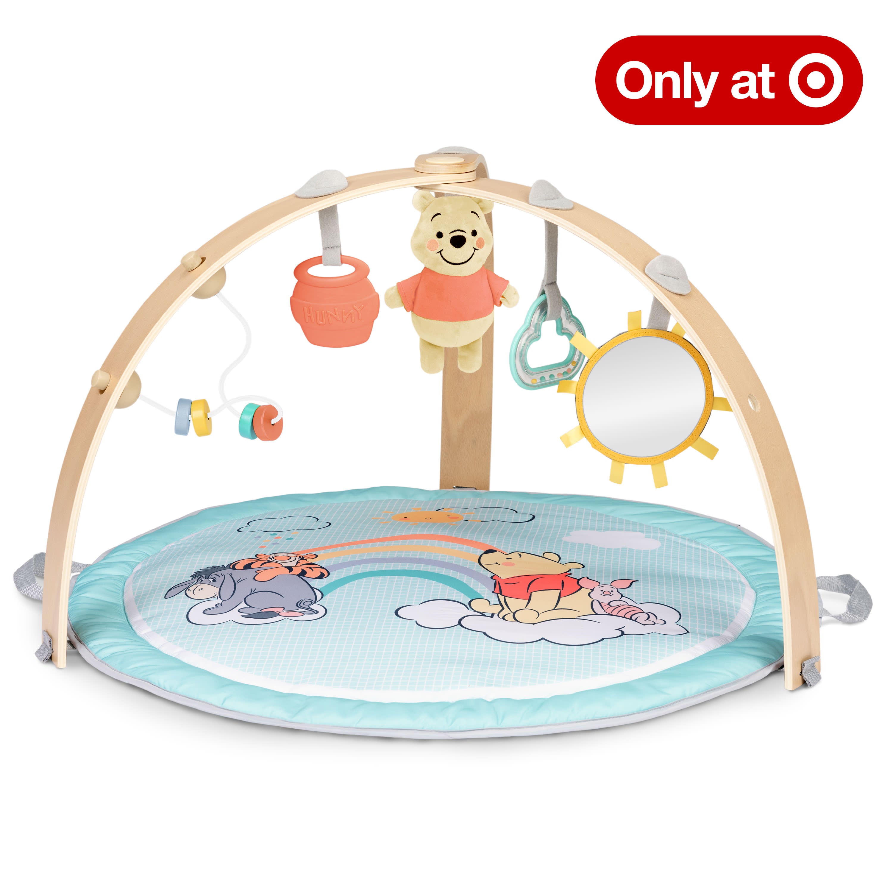 - Encourage tummy time, fine motor skill development, and sensory engagement with this nostalgic Winnie the Pooh-themed play gym; introduce baby, ages newborn and up, to the whimsy of the Hundred Acre Wood