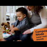 - 2 modes of play: Composer Mode lets baby layer sounds to make music; Discovery Mode teaches colors, shapes, and instruments in 4 languages: English, Spanish, French, and German