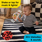 - Baby’s taps or shakes play 30+ melodies and sounds, and trigger dancing lights to engage baby in multisensory discovery and teach cause and effect skills.