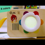 Color learning is a snap with the Baby Einstein + Hape Learning Lens Toy Camera. Two interactive features engage baby in pretend play and color learning and hone cause and effect and fine motor skills with every press and twist. Twist the camera’s lens to put color learning into focus. Baby can learn 6 color names in 4 languages (English, Spanish, French, and German), see the lens glow to match each color, and enjoy melodies and sounds! Press the shutter button to “take a picture” of your favorite Baby Einstein characters! Each time baby presses the button, a “photo” pops up and baby can hear real-life shutter sounds to teach cause and effect and reward baby’s movements while seeing their reflection on the back. The Montessori-inspired camera’s FSC-certified wood surface & retro design wipes clean and is easy for baby to hold and grasp. A strap lets your little shutter bug take this toy on the go and look just like a real photographer! Dimensions: 2.36 x 4.72 x 4.33 inches. Includes 3 AAA batteries.