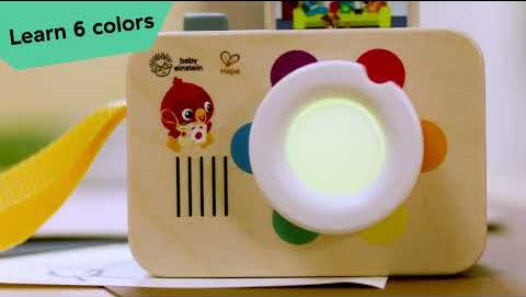 - The Baby Einstein + Hape Learning Lens Toy Camera promotes color learning, fine motor skills, cause and effect discovery, and pretend play