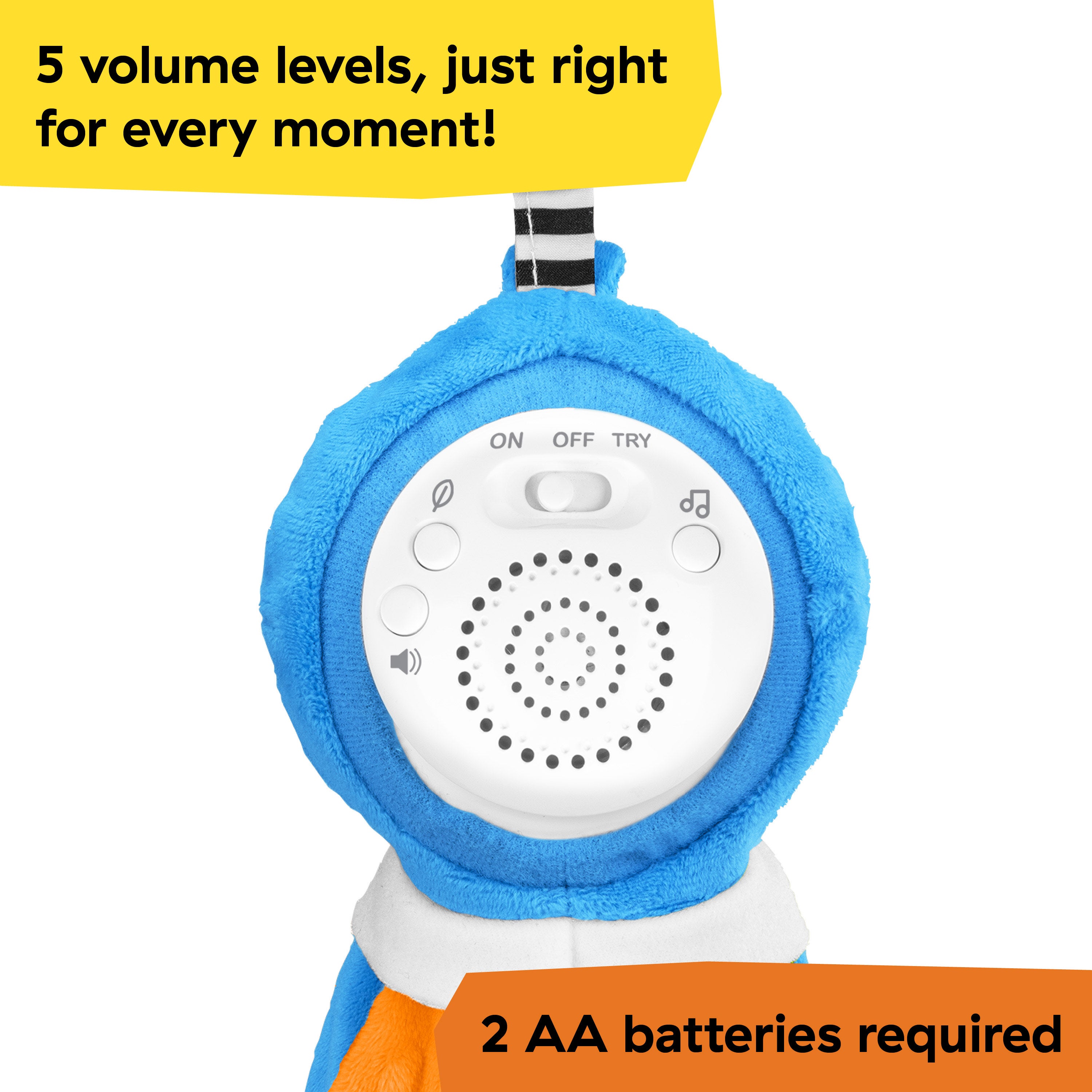 - Opus plays 20 melodies & 4 soothing sounds including water sounds, shushing, and pink noise; up to 15 minutes of continuous music and sounds