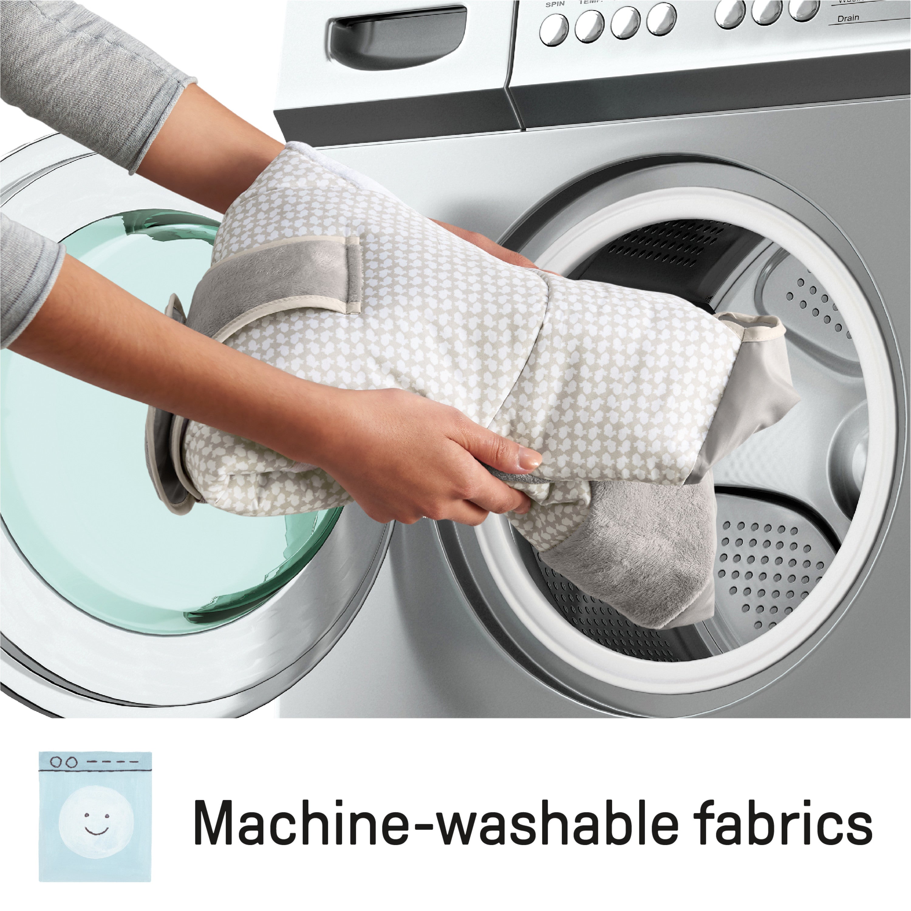 - LightBeams mobile includes 2 plush toys & projects a dazzling light show; mirror on the underside of the mobile encourages self-discovery. Easy to clean with machine washable seat pad & bolster pillow; frame & toys wipe clean