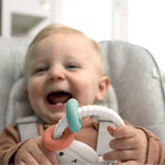 The Ingenuity™ Soothing Sheppy™ Teether Toy is the friend baby needs when those first teeth start coming in. The smooth texture and indentations on the large ring help ease sore gums as baby sucks on the BPA-free silicone. An ergonomic design and 2 small activity rings are easy to grasp for little hands. The gender neutral colors and style make this toy great for gifting as a stocking stuffer or for baby showers. Nothing can stop those molars from coming in, but Sheppy™ the sheep teether can provide comfort and relief for baby in every teething stage.