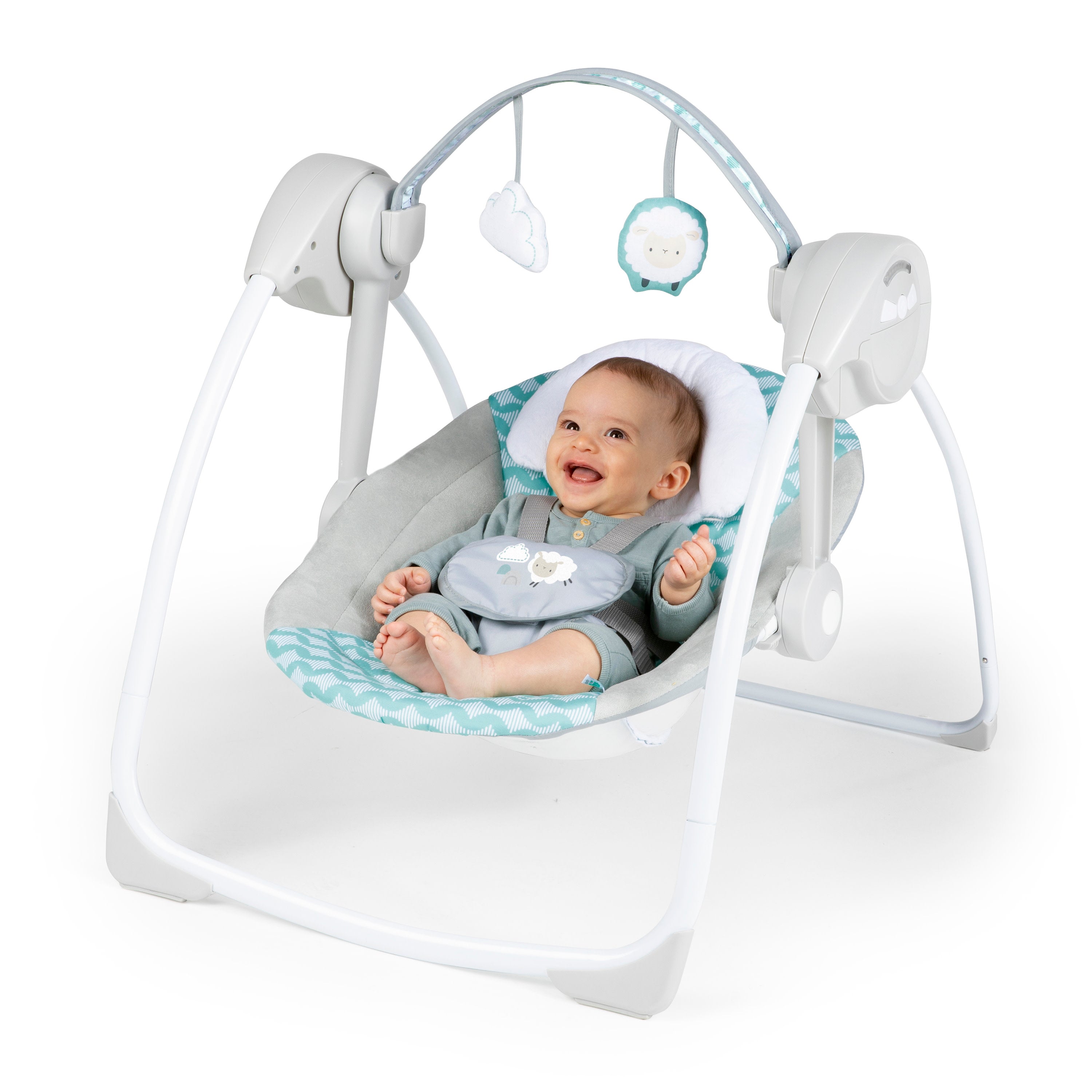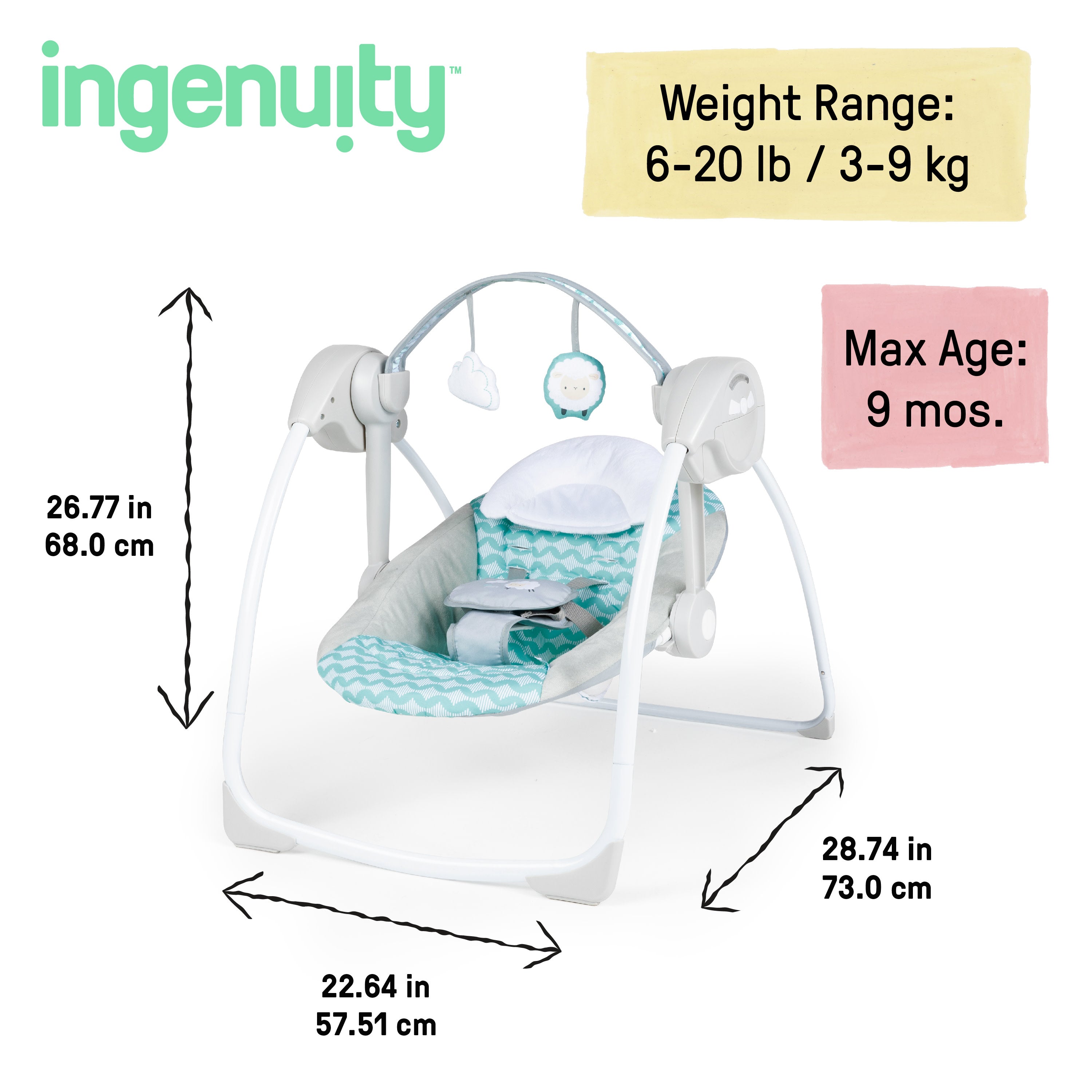 For whatever soothing motion your little one needs, the Ity by Ingenuity Swingity Swing Easy-Fold Portable Swing is just your baby’s speed. With TrueSpeed Technology, 6 different speed options allow you to select the most calming pace. Babies can be soothed in this comfy seat with 2 reclining positions and a removable headrest for newborns. Easily move between rooms with a take-along handle and easy-fold design. Cleanup is breeze with a washable seat pad. An adjustable 5-point harness keeps baby secure from birth to 9 months. The Swingity Swing gives your little one a comforting, compact spot so you can both relax.