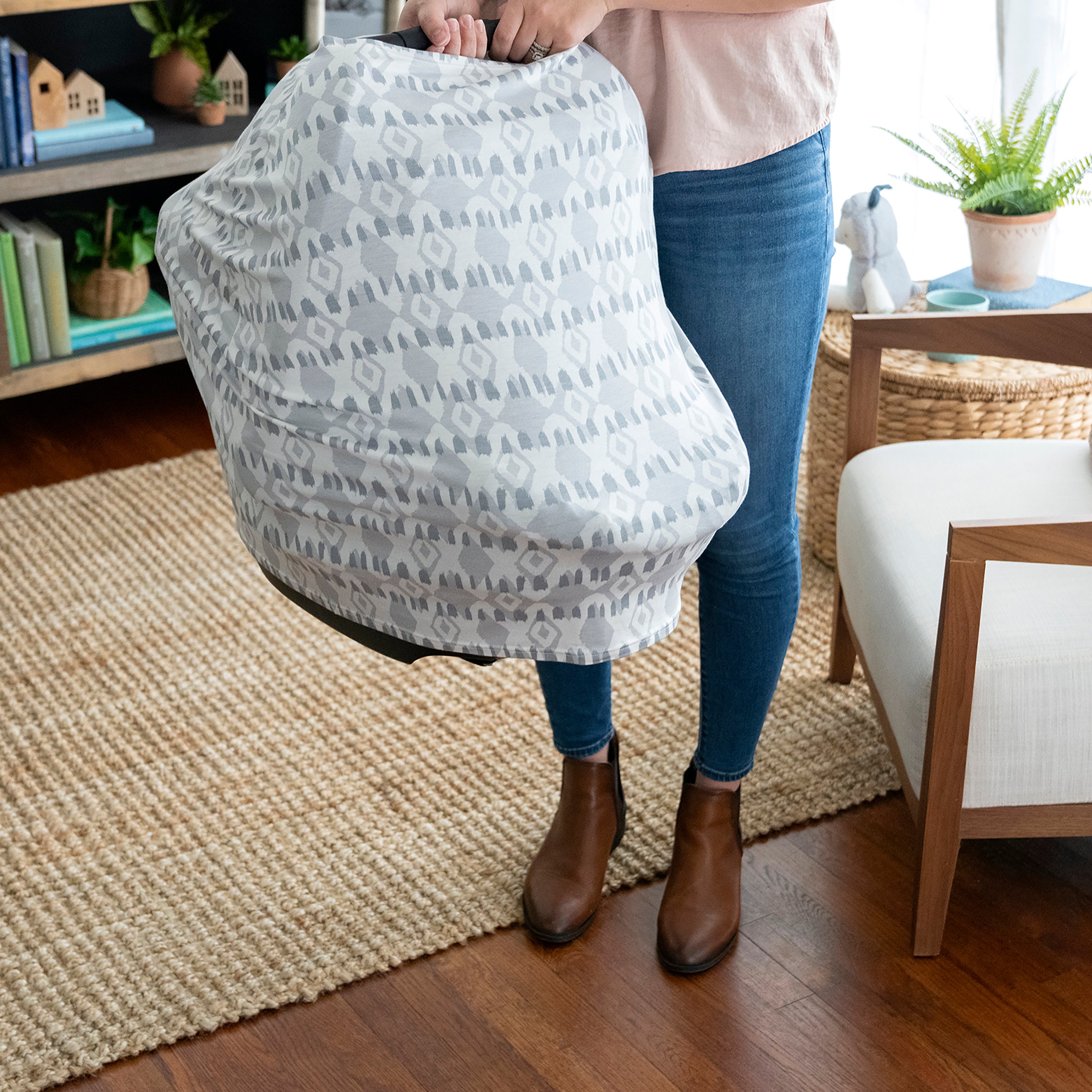 The best companion for a multitasking parent? A 4-in-1 multitasking cover that can function as nursing cover, infinity scarf, or as a cover for the carrier, stroller, shopping cart, high chair, and more. The Ingenuity Good to Go™ 4-in-1 Multi-Use Cover has a soft, stretchy fabric that’s large enough to provide privacy and comfort while breastfeeding. It’s lightweight, while shielding baby from weather and germs while you’re out and about. Toss in the wash for easy cleaning between uses and then back in the diaper bag to keep you covered on your next outing.