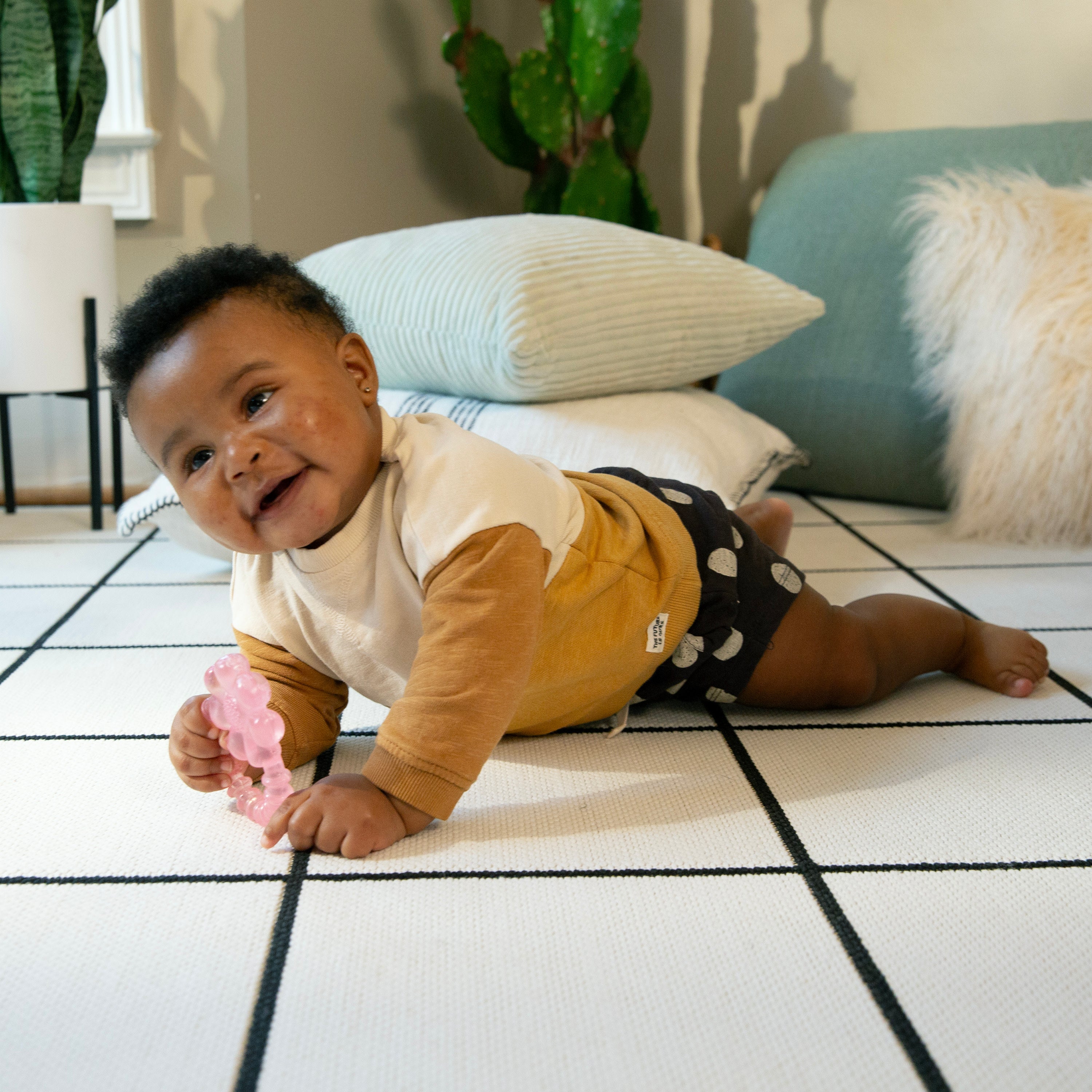 - The teether's easy-to-grasp design fits perfectly in baby's tiny hands and is compact enough to store away in diaper bags and purses; for age 3 months and up