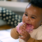 - This teether has multiple textures to bring relief and soothe achy gums; baby will love the teether's soft pastel pink color and cute daisy flower