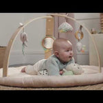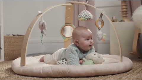 - The toys and materials used for this gym were chosen specifically for the first year of baby's life, to help with their visual and tacticle development. An included tummy time pillow supports baby as they spend time on their stomach