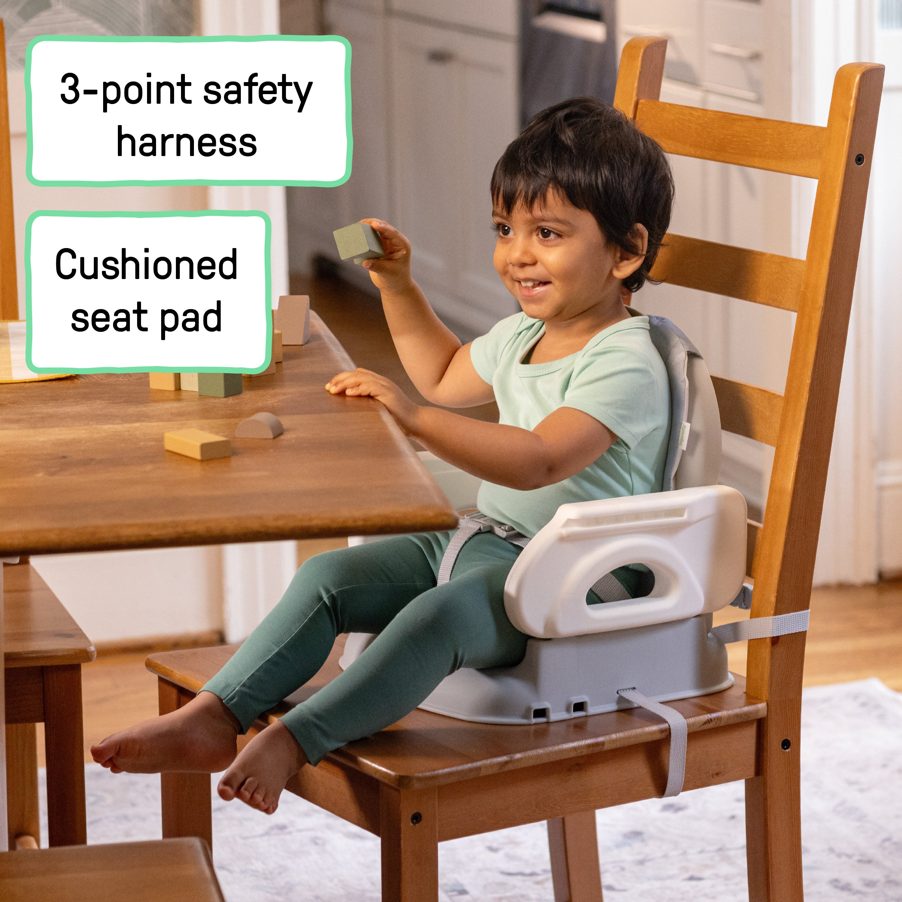 - Your little one is ready for their own seat at the table! Wherever you go, this lightweight and foldable booster brings consistency, ease, and comfort to mealtime