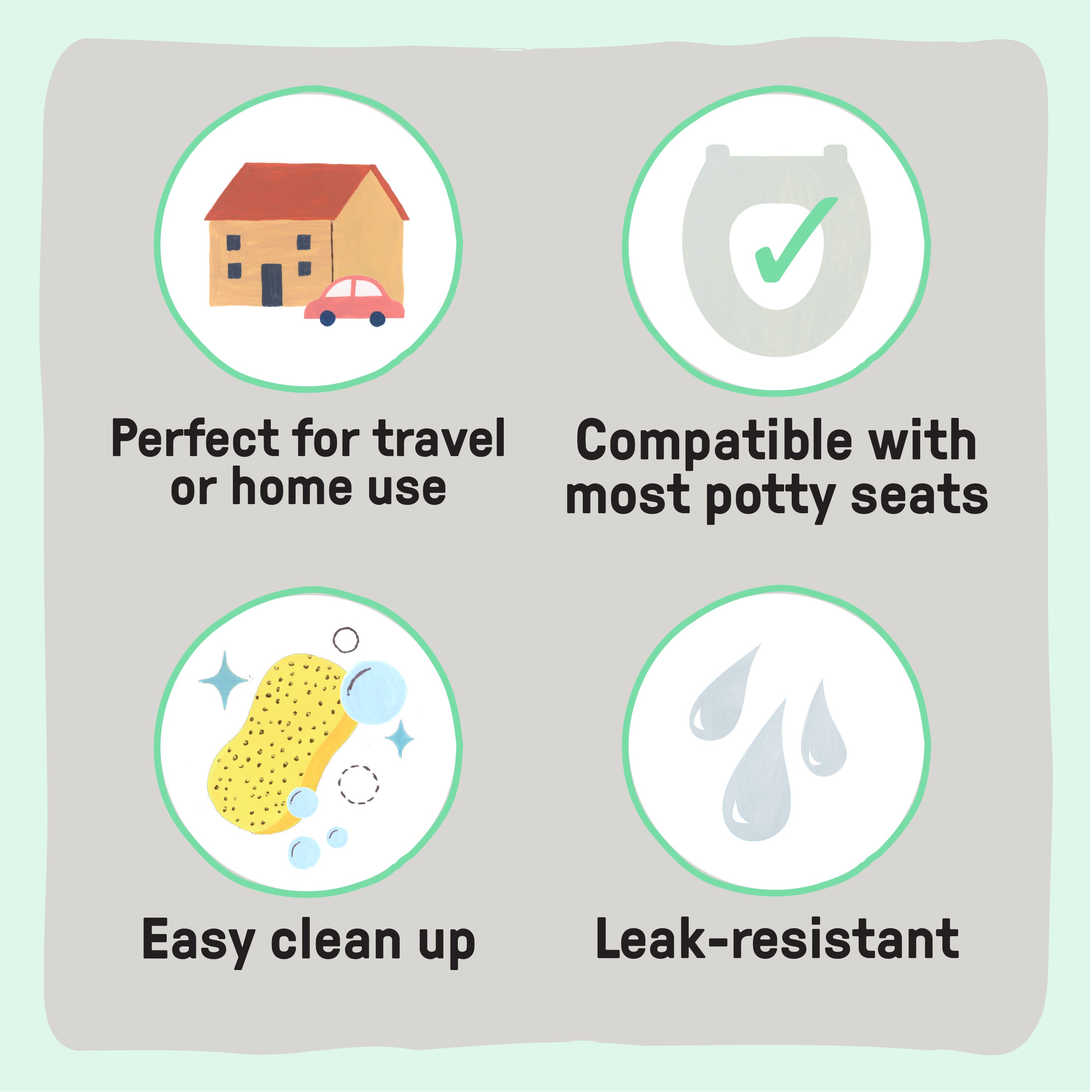 - Includes 30 leak-resistant disposable liners designed for use with Ingenuity™ 2-in-1 My Travel Potty or most travel/home potty seats.