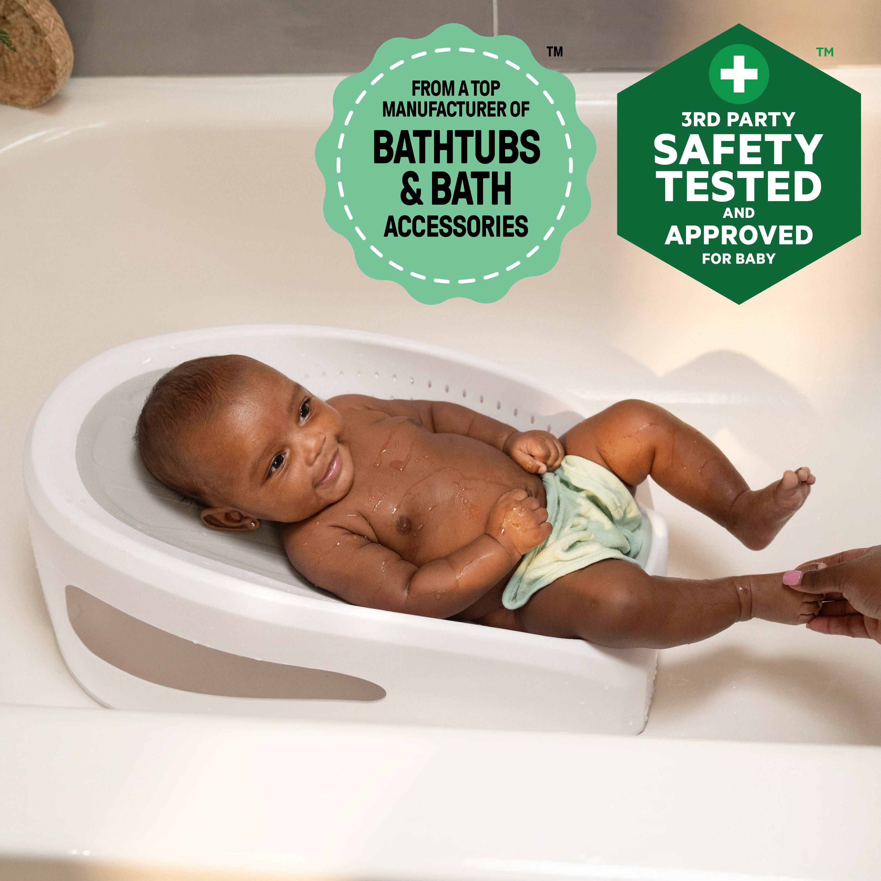- Keep baby cradled, comfortable, and supported at bath time with a secure bather