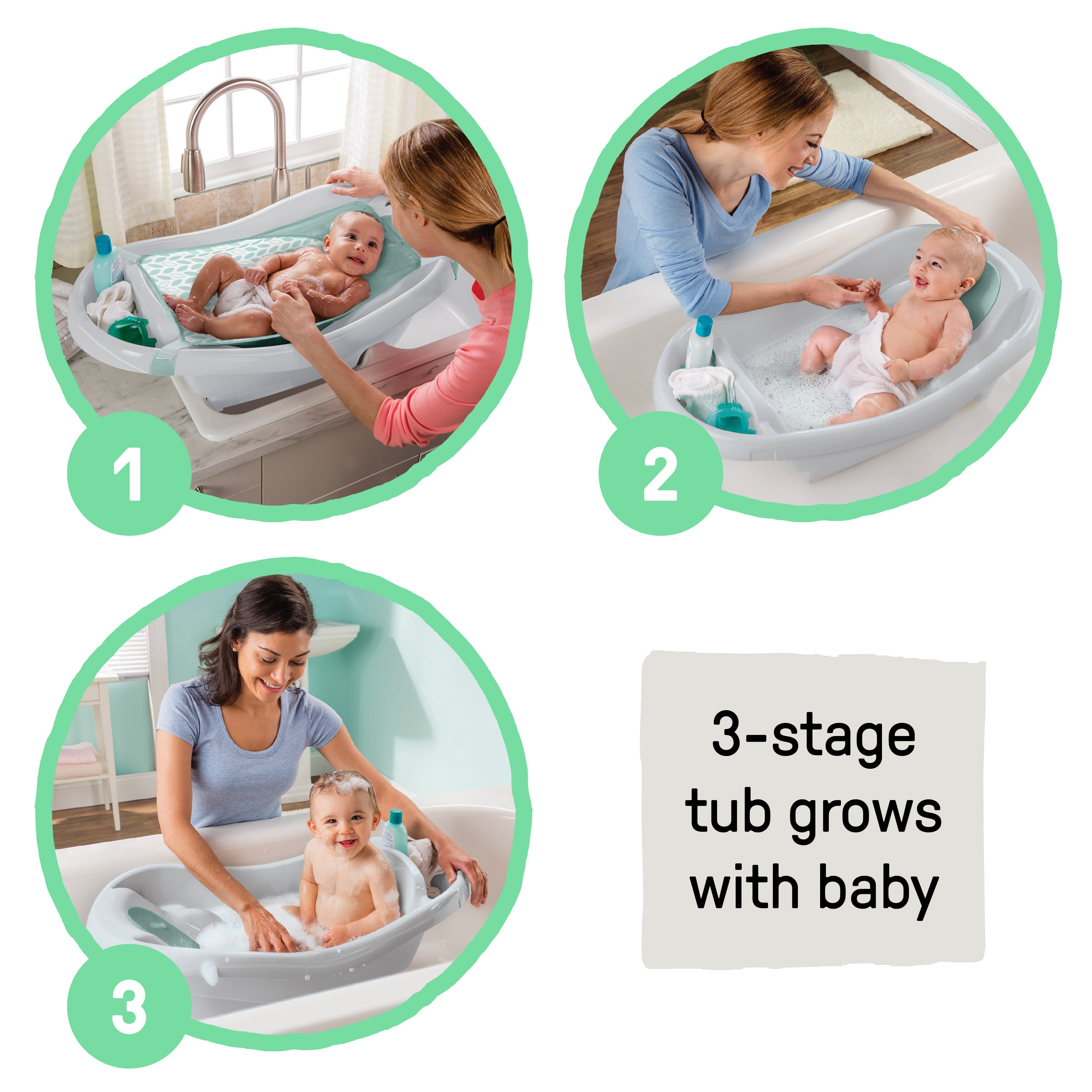 • 3 modes to keep baby comfortable and secure at bathtime from newborn to toddler
