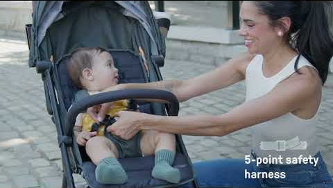 - Keep baby safe and comfortable with a five-point safety harness and an adjustable seat that can be reclined to the perfect position