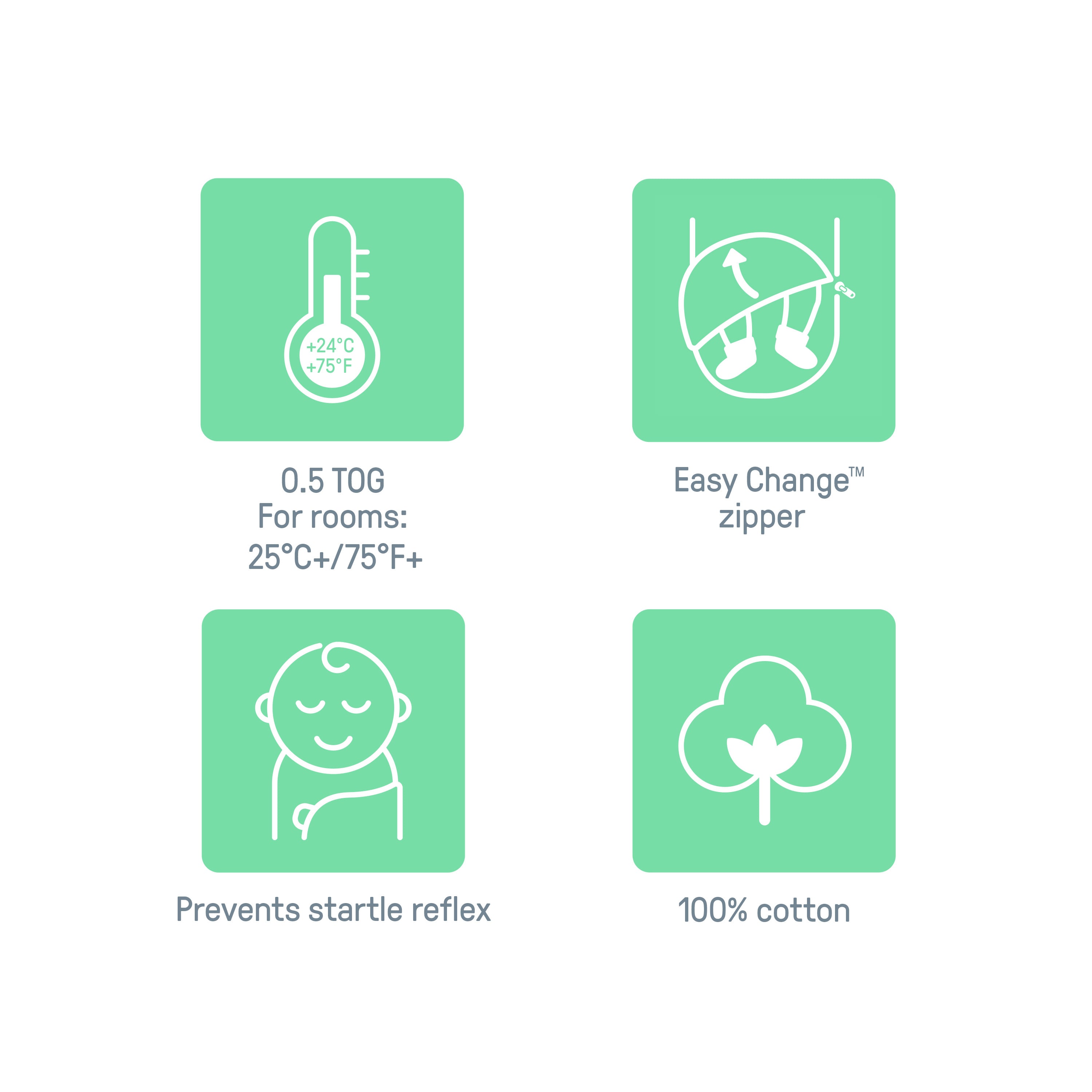 - The wings of this adjustable swaddle blanket wrap around baby for the perfect fit every time, and the Easy Change zipper along the bottom makes diaper changes quick and quiet