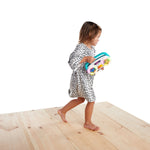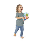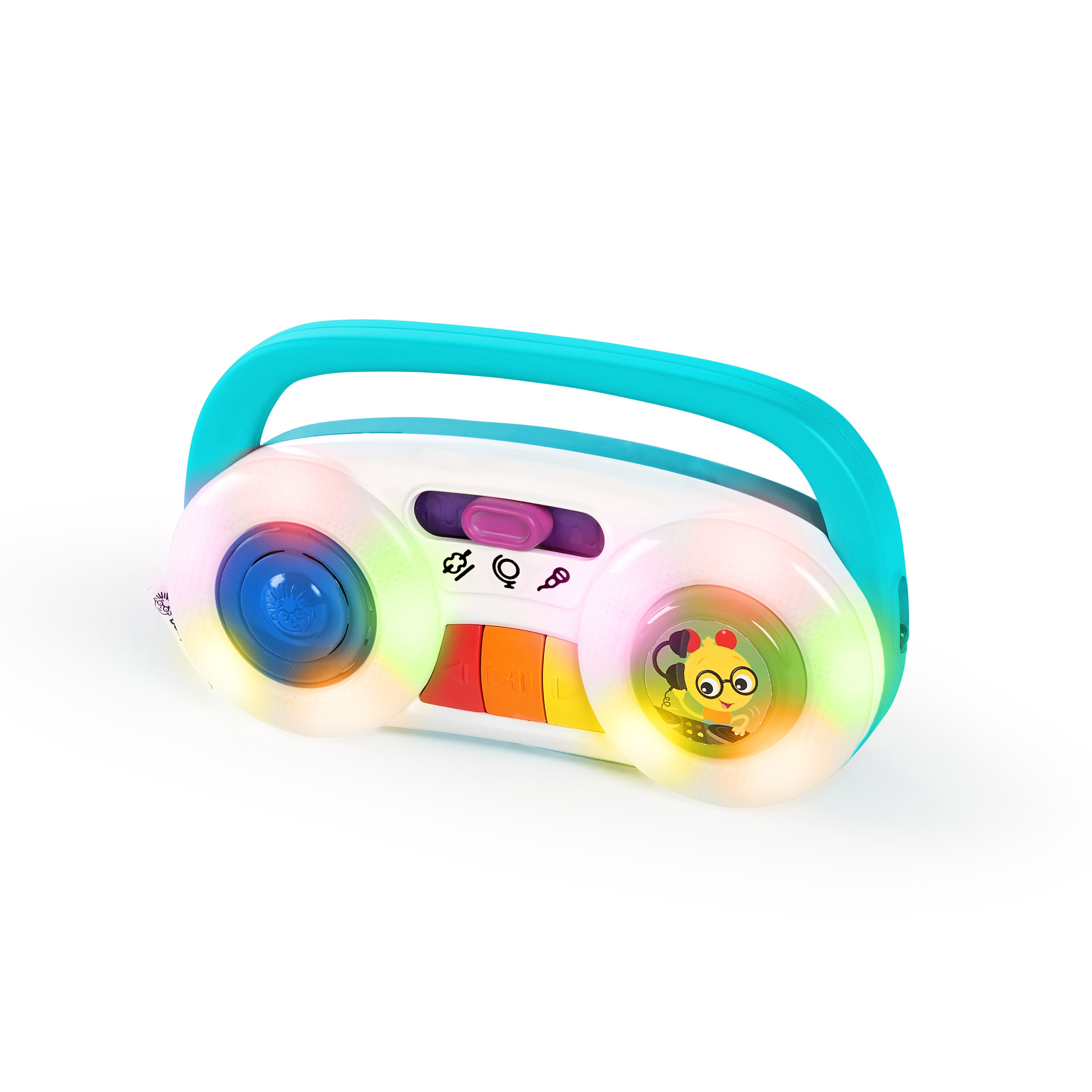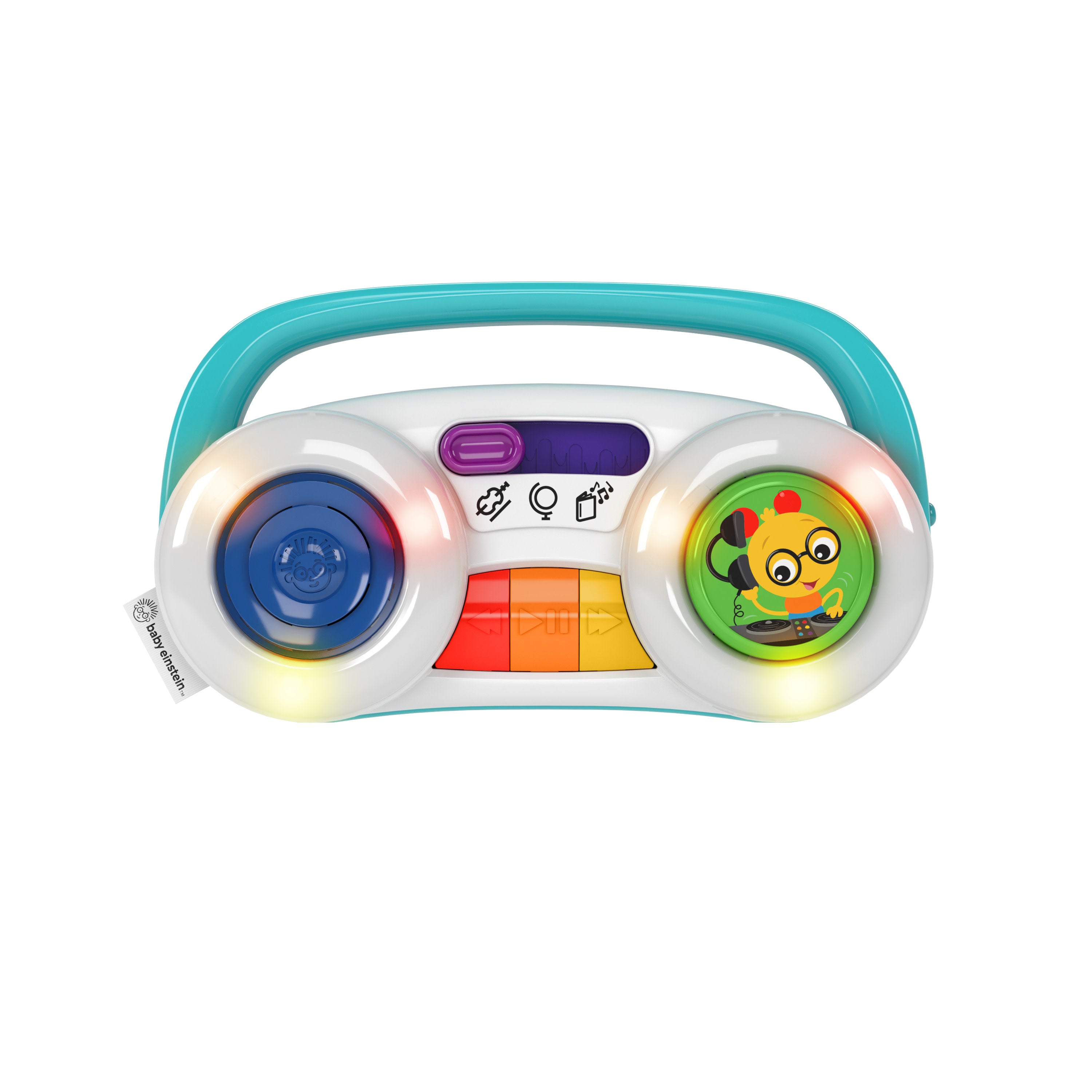 The Toddler Jams musical toy by Baby Einstein lets baby move and groove to 30+ melodies. Introduce a world of music with selections ranging from classical songs to pop music to global genres. This take along toy has an easy-to-grab handle for a concert on the go. A colorful light show plays along to the beat of the music, encouraging development of fine motor skills as baby dances to the rhythm. With bright buttons, he can pause, skip, replay or re-mix it up. This music player is a toddler toy that sparks a lifelong love of music.