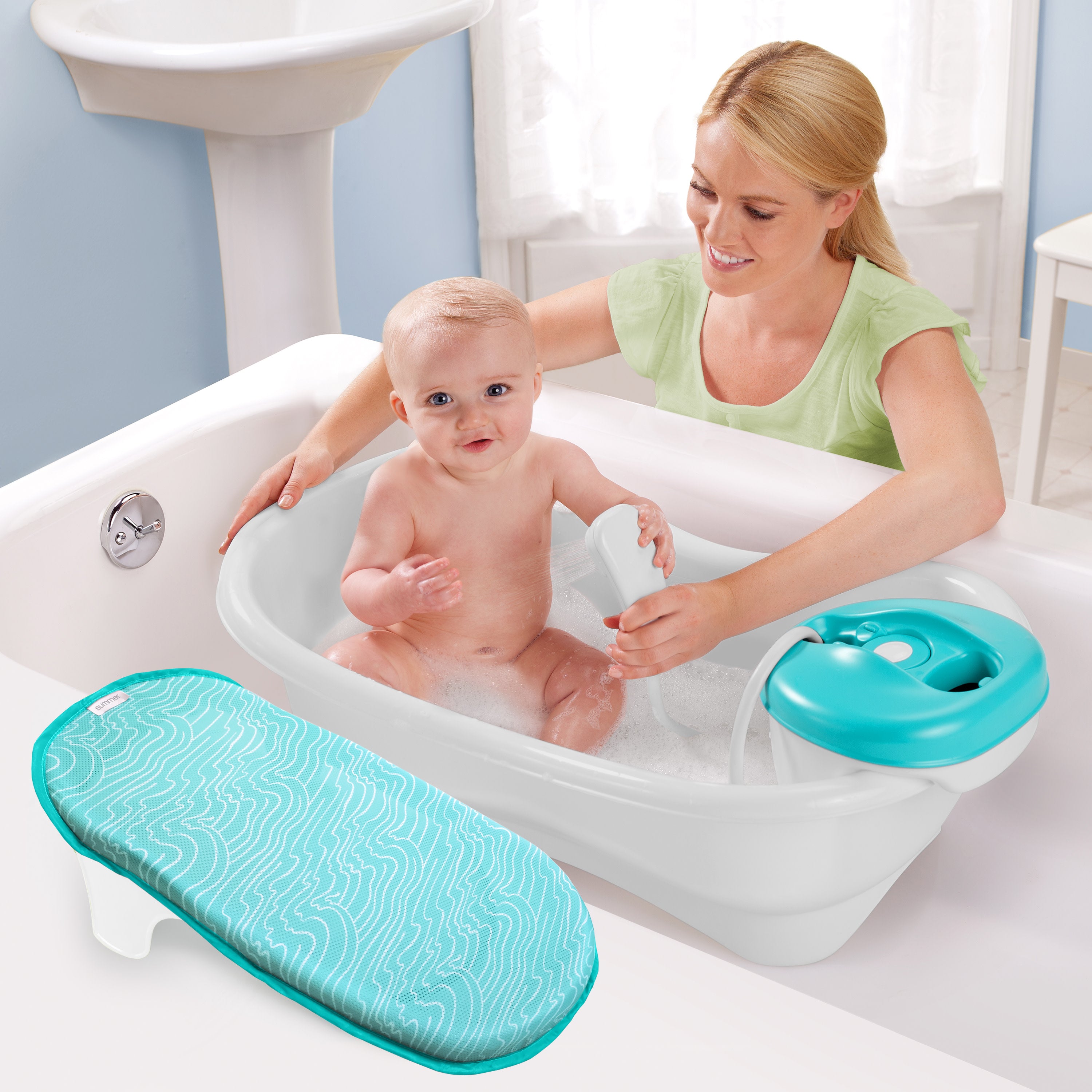 The Newborn-to-Toddler Bath Center & Shower is the only tub parents will need from infancy through toddler ages. The tub has four stages that grow with your child to make bath time easier and more convenient for both parent and baby. A portable motorized shower unit provides a gentle rinse spray that can be used long after your child transitions to an adult tub.